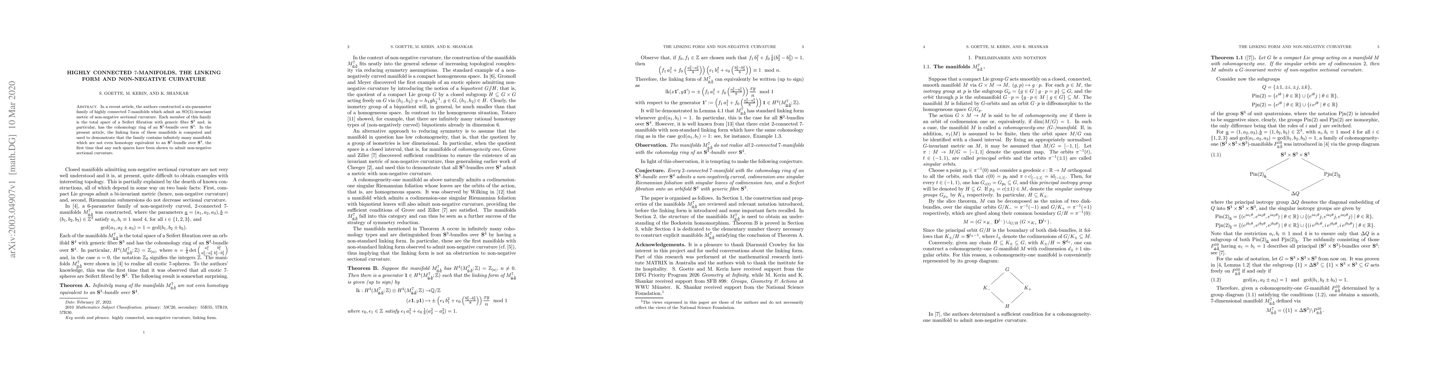 This paper computes the linking form of a six-parameter family of highly connected 7-manifolds with non-negative sectional curvature, showing these manifolds are not even homotopy equivalent to $S^3$-bundles over $S^4$, despite sharing their cohomology ring. This discovery highlights new geometric properties in manifolds with non-negative curvature.