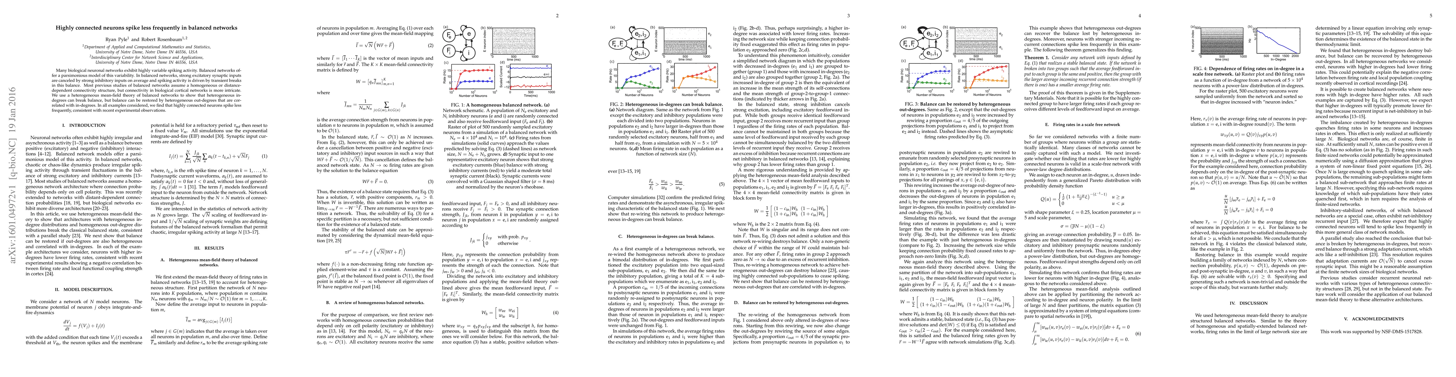 This paper demonstrates that in balanced networks, highly connected neurons exhibit reduced spiking frequency, a finding supported by both theoretical analysis and experimental observations. The study employs a heterogeneous mean-field theory to show how balance can be maintained through correlated out-degrees, despite intricate connectivity patterns.