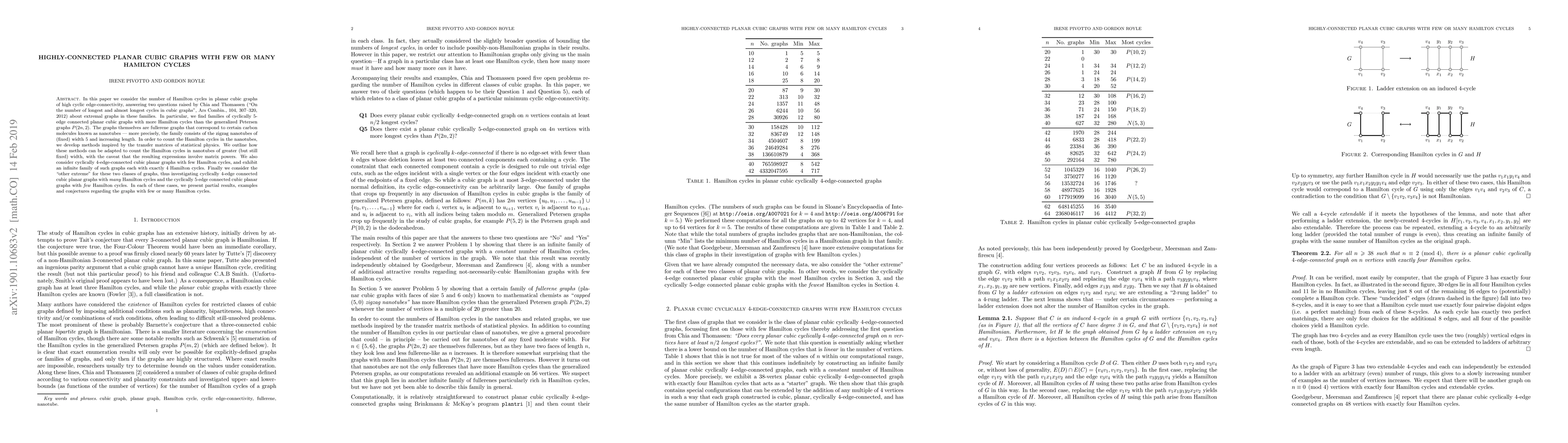 This paper explores Hamilton cycles in highly-connected planar cubic graphs, specifically fullerene graphs known as zigzag nanotubes. It identifies nanotube families with more Hamilton cycles than generalized Petersen graphs, and develops counting methods inspired by statistical physics. It also examines cyclically $4$-edge-connected cubic planar graphs with exactly $4$ Hamilton cycles and discusses extremes in Hamilton cycle counts for different graph classes.