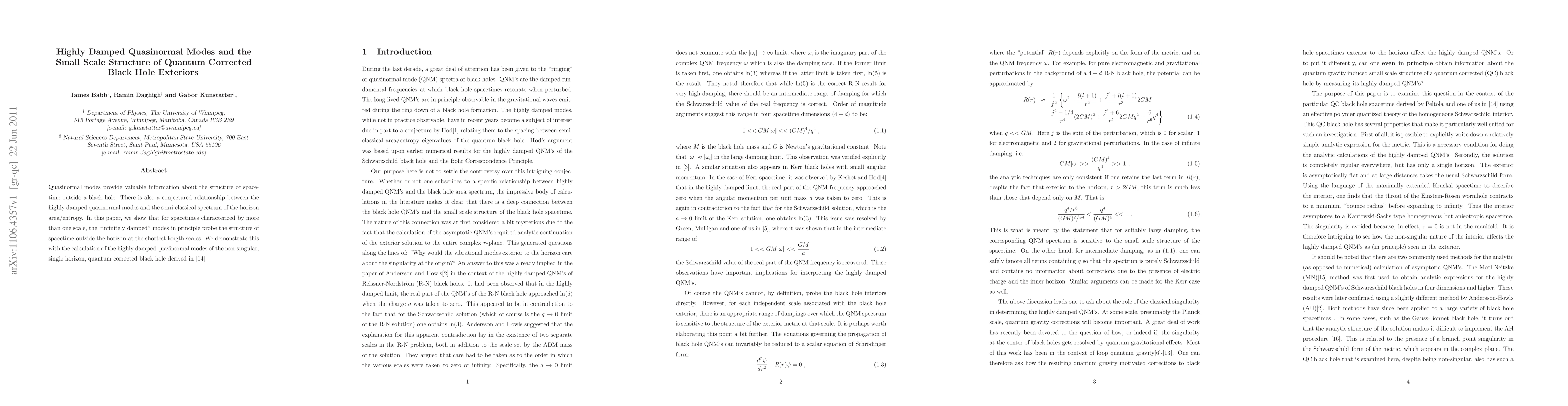 Quasinormal modes provide valuable information about the structure of spacetime outside a black hole. There is also a conjectured relationship between the highly damped quasinormal modes and the semi-classical spectrum of the horizon area/entropy. In this paper, we show that for spacetimes characterized by more than one scale, the "infinitely damped" modes in principle probe the structure of spacetime outside the horizon at the shortest length scales. We demonstrate this with the calculation of the highly damped quasinormal modes of the non-singular, single horizon, quantum corrected black hole derived in [14].