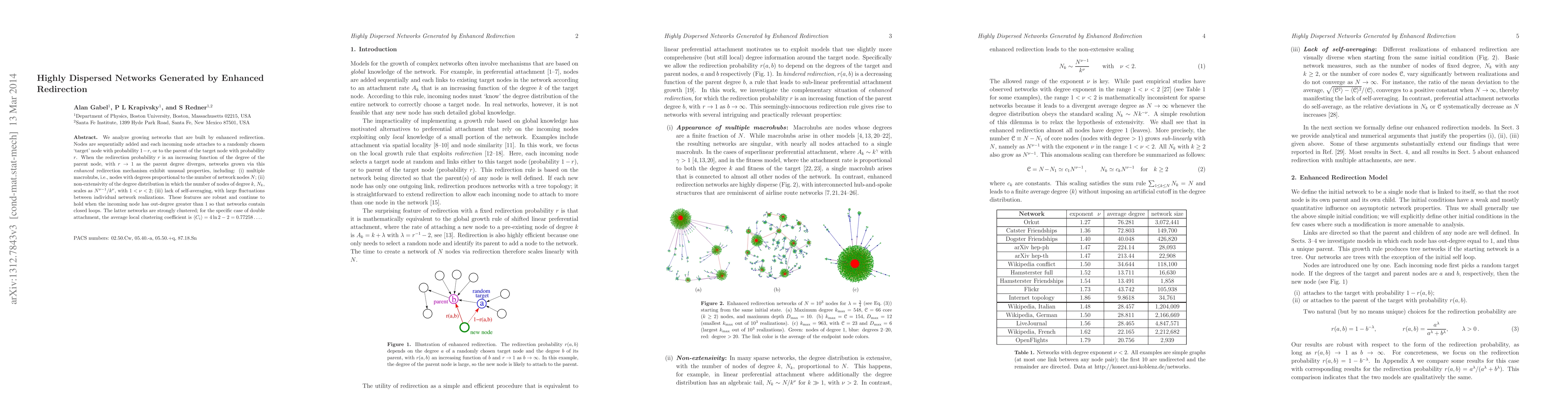 networks grown via this enhanced redirection mechanism exhibit unusual