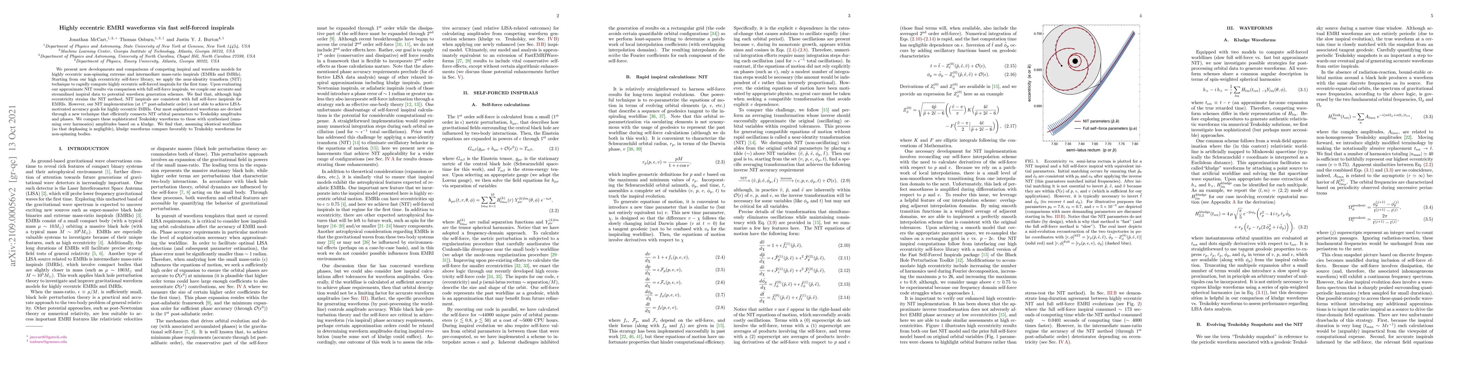 This paper introduces new methods for computing highly eccentric extreme and intermediate mass-ratio inspirals (EMRIs and IMRIs) using the near-identity transform (NIT) technique, finding NIT results consistent with full self-force inspirals for EMRIs but not for IMRIs. It also presents a sophisticated waveform generation technique connecting NIT parameters to Teukolsky amplitudes, which compares favorably to synthesized kludge waveforms for non-spinning bodies.