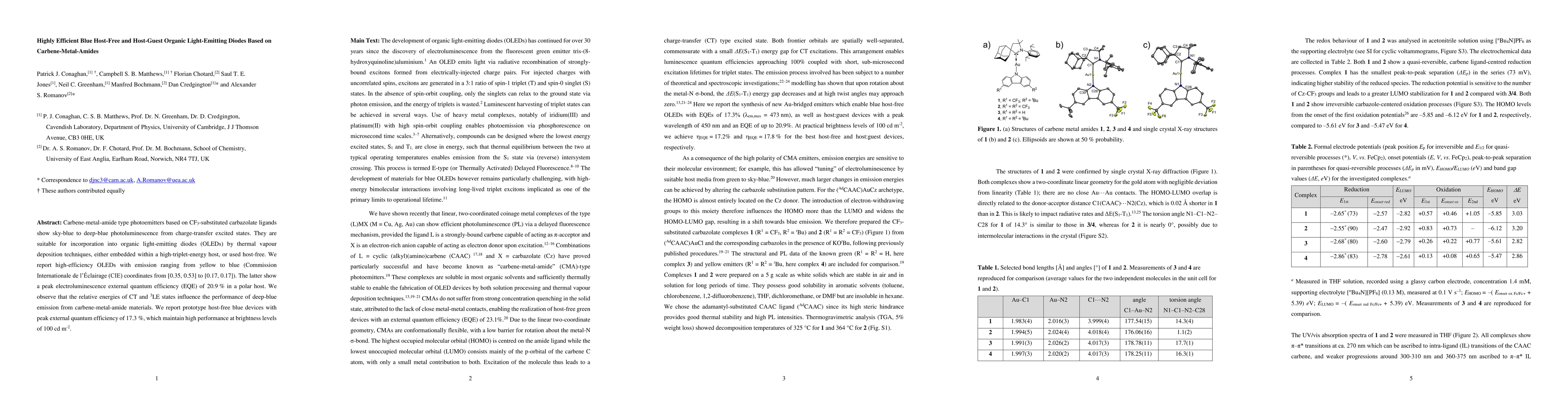 This paper reports highly efficient blue-emitting organic light-emitting diodes (OLEDs) using carbene-metal-amide photoemitters based on CF$_3$-substituted carbazolate ligands. The devices achieve high performance both with and without a high-triplet-energy host, demonstrating peak external quantum efficiencies of up to 20.9% and 17.3% respectively.