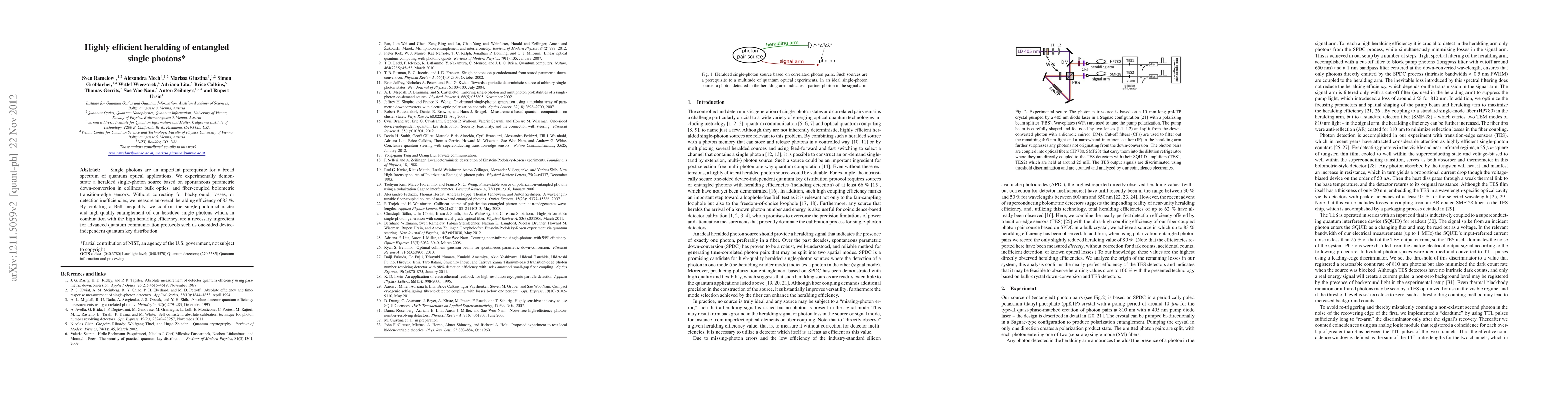 This paper demonstrates a highly efficient heralded single-photon source using spontaneous parametric down-conversion, achieving an 83% heralding efficiency. The high-quality entanglement and single-photon character are confirmed by violating a Bell inequality, making it suitable for advanced quantum communication protocols.