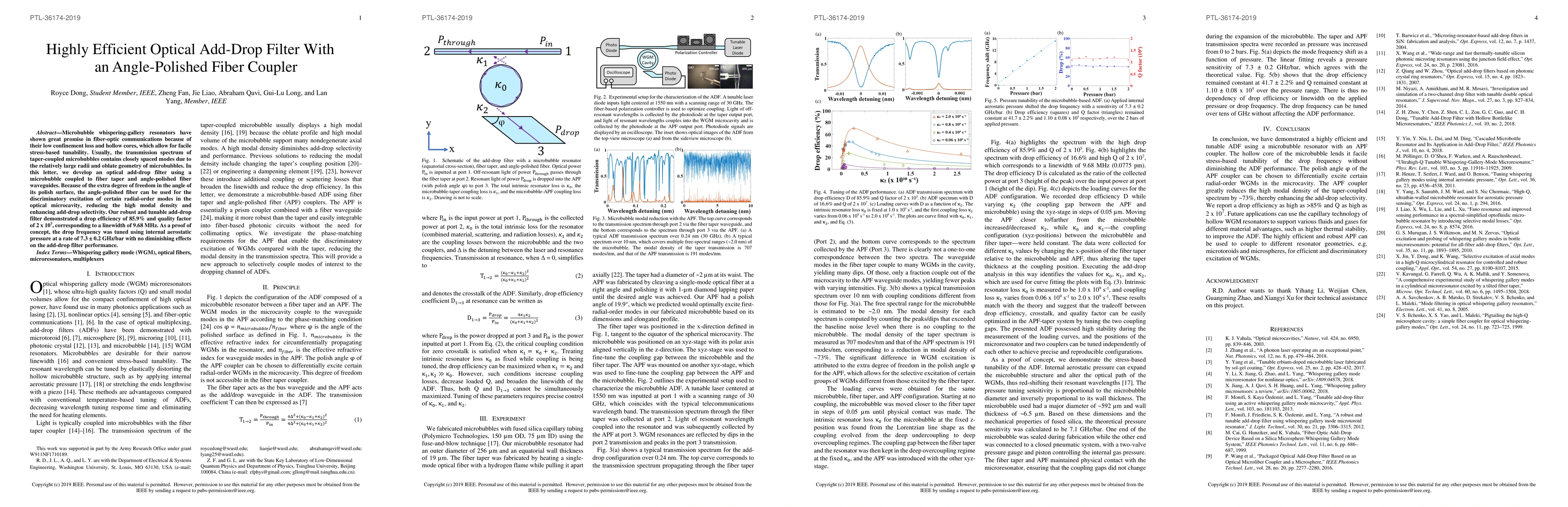 Researchers created an efficient optical add-drop filter using microbubbles coupled to angle-polished fiber waveguides, achieving a 85.9% drop efficiency and linewidth of 9.68 MHz.
