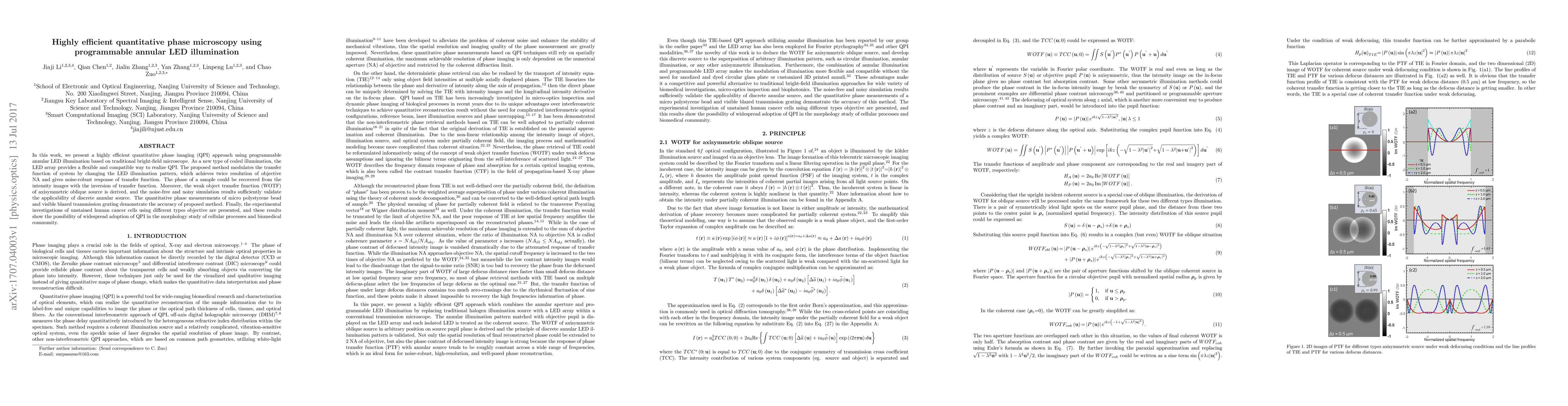 This paper introduces a quantitative phase imaging method using programmable annular LED illumination for enhanced resolution and noise robustness. The proposed approach, based on a traditional bright-field microscope, demonstrates accurate phase recovery and potential for widespread use in biomedical studies.