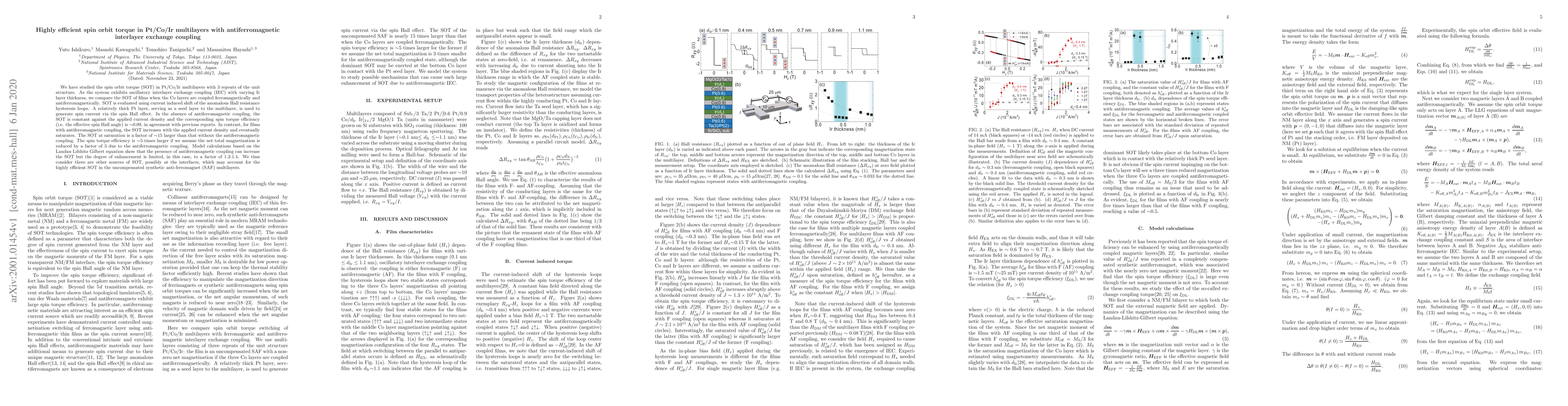 This study investigates spin orbit torque (SOT) in Pt/Co/Ir multilayers with antiferromagnetic interlayer coupling, finding that SOT efficiency increases significantly under antiferromagnetic coupling compared to ferromagnetic coupling, suggesting additional interface-related sources of SOT.