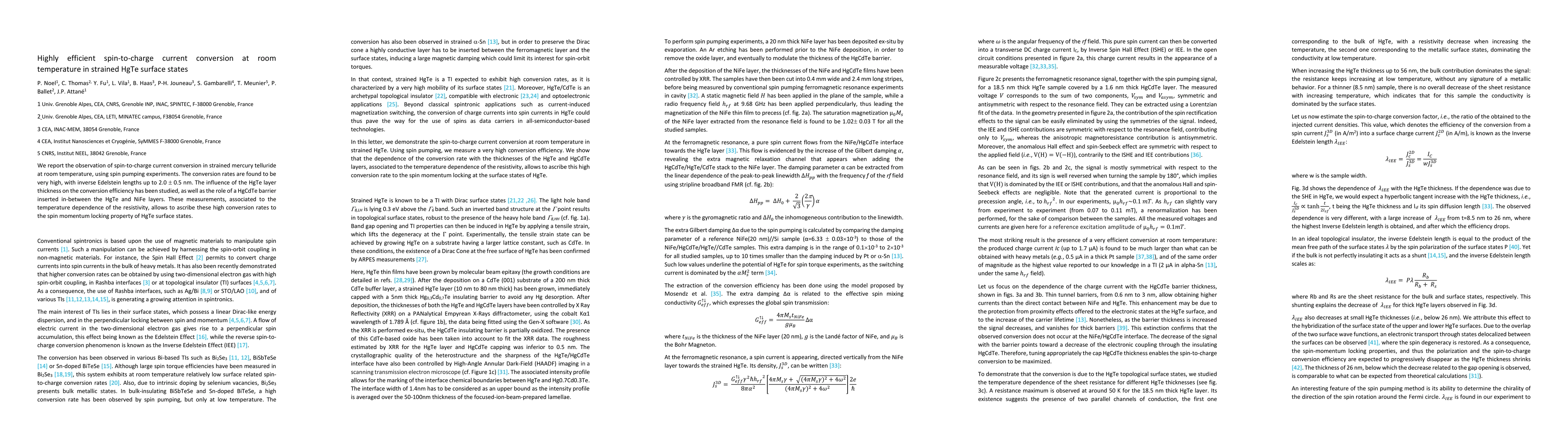 This paper reports highly efficient spin-to-charge current conversion at room temperature in strained HgTe surface states, achieving inverse Edelstein lengths up to 2.0 +/- 0.5 nm. The study attributes these high conversion rates to the spin momentum locking property of HgTe surface states.