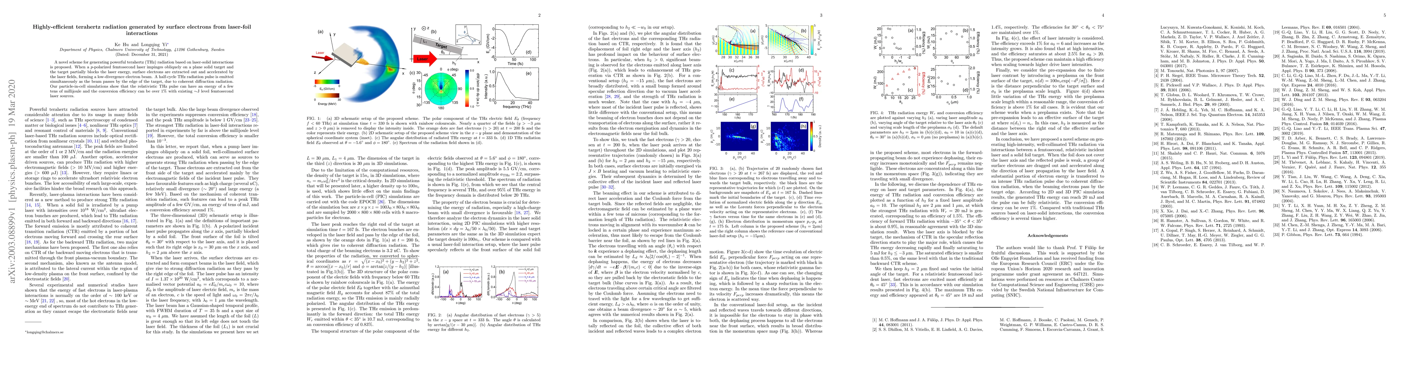 This paper proposes a method for generating highly-efficient terahertz radiation through laser-foil interactions, where $p$-polarized femtosecond lasers obliquely strike a solid target, extracting and accelerating surface electrons to produce a low-divergence electron beam that emits coherent diffraction radiation. Simulation results show potential for THz pulses with energy in the millijoule range and conversion efficiencies exceeding 1%.