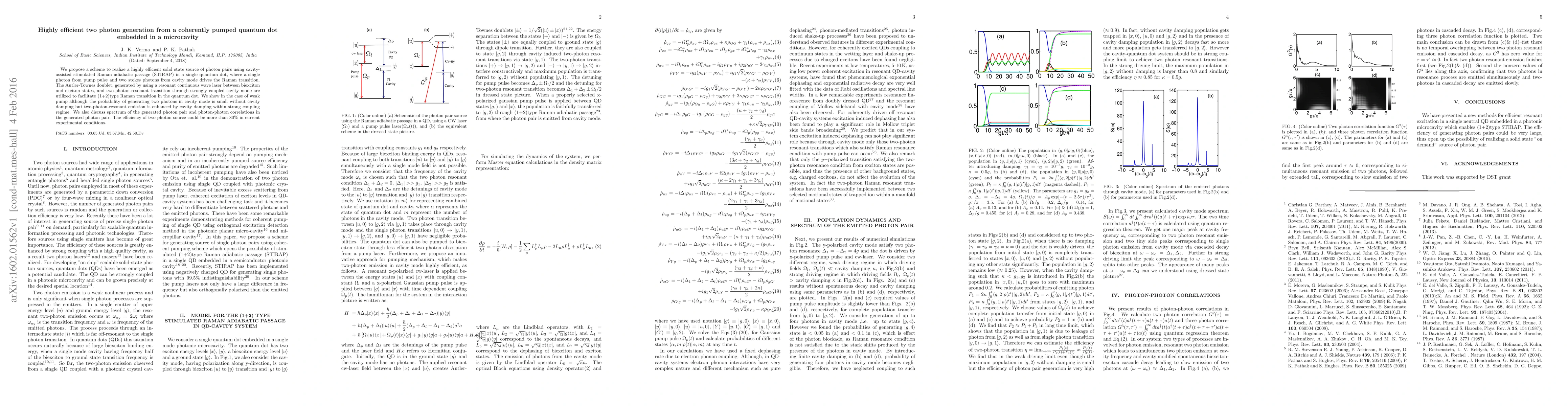We propose a scheme to realize a highly efficient solid state source of photon pairs using cavity-assisted stimulated Raman adiabatic passage (STIRAP) in a single quantum dot, where a single photon from pump pulse and two stokes photons from cavity mode drives the Raman transition. The Autler-Townes doublet, generated by using a resonant continuous wave laser between biexciton and exciton states, and two-photon-resonant transition through strongly coupled cavity mode are utilized to facilitate (1+2)type Raman transition in the quantum dot. We show in the case of weak pump although the probability of generating two photons in cavity mode is small without cavity damping but two-photon-resonant emission is enhanced by cavity damping within strong coupling regime. We also discuss spectrum of the generated photon pair and photon-photon correlations in the generated photon pair. The efficiency of two photon source could be more than 80\% in current experimental conditions.
