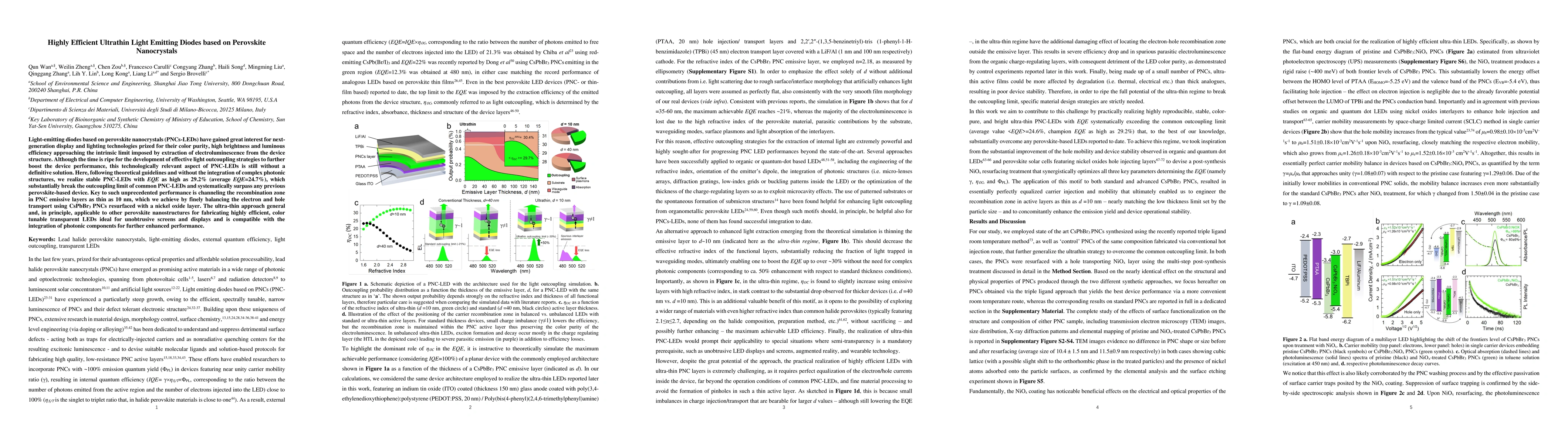 This research reports the development of highly efficient ultrathin perovskite nanocrystal light-emitting diodes (PNCs-LEDs) achieving an external quantum efficiency (EQE) of up to 29.2%, surpassing previous devices by optimizing electron and hole transport without complex photonic structures. The method involves resurfacing CsPbBr3 PNCs with a nickel oxide layer and positioning the recombination zone in ultrathin emissive layers, offering a scalable solution for next-generation transparent displays.