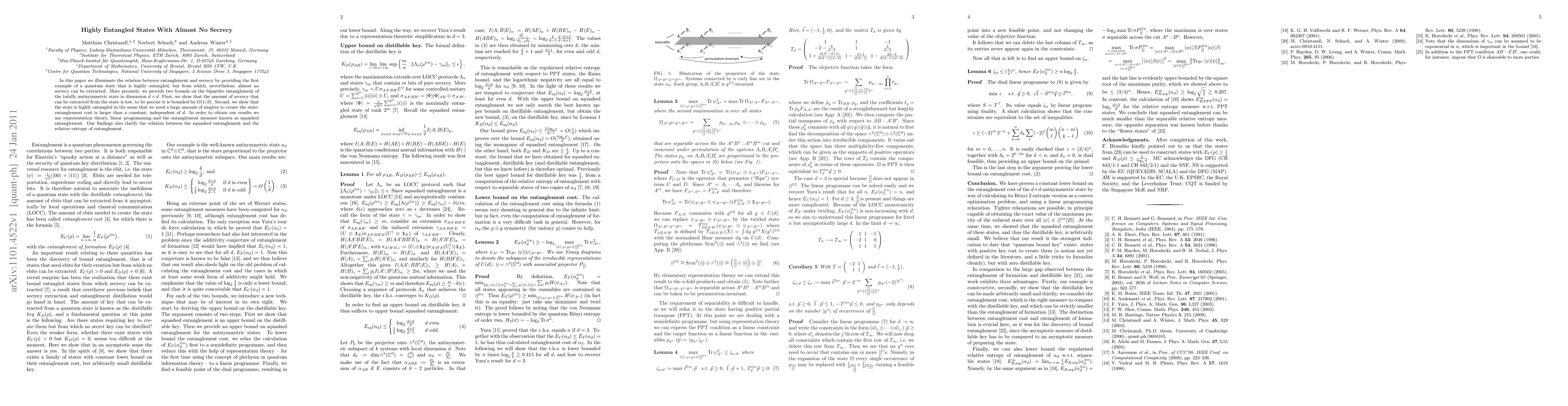 In this paper we illuminate the relation between entanglement and secrecy by providing the first example of a quantum state that is highly entangled, but from which, nevertheless, almost no secrecy can be extracted. More precisely, we provide two bounds on the bipartite entanglement of the totally antisymmetric state in dimension d x d. First, we show that the amount of secrecy that can be extracted from the state is low, to be precise it is bounded by O(1/d). Second, we show that the state is highly entangled in the sense that we need a large amount of singlets to create the state: entanglement cost is larger than a constant, independent of d. In order to obtain our results we use representation theory, linear programming and the entanglement measure known as squashed entanglement. Our findings also clarify the relation between the squashed entanglement and the relative entropy of entanglement.