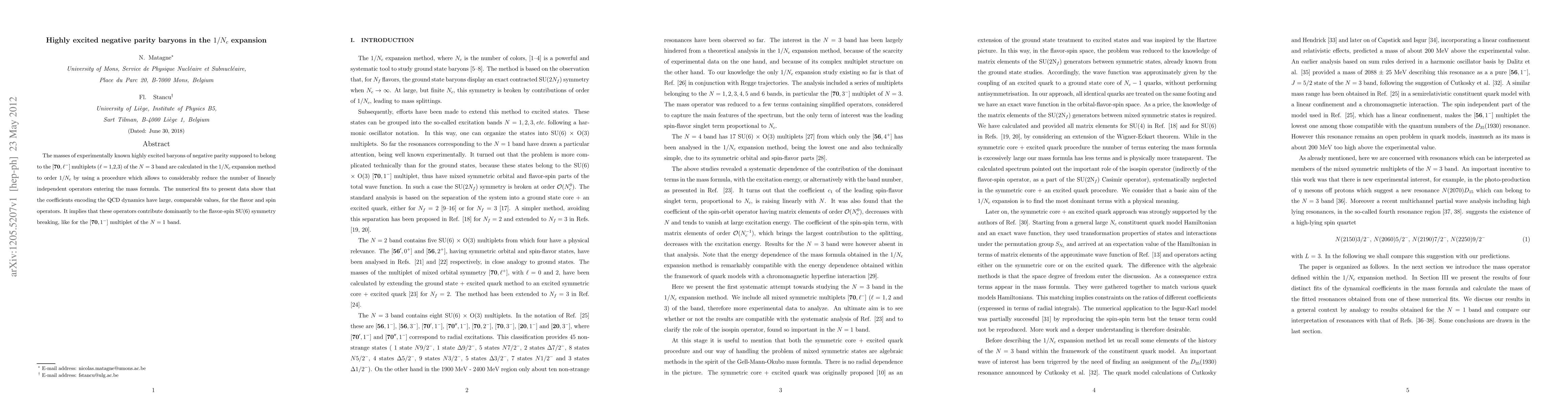 This paper calculates the masses of highly excited negative parity baryons in the $1/N_c$ expansion method, finding that the coefficients for flavor and spin operators have large, comparable values, indicating dominant contributions to flavor-spin SU(6) symmetry breaking. The results align with the $[{\bf 70},1^-]$ multiplet of the $N = 1$ band.