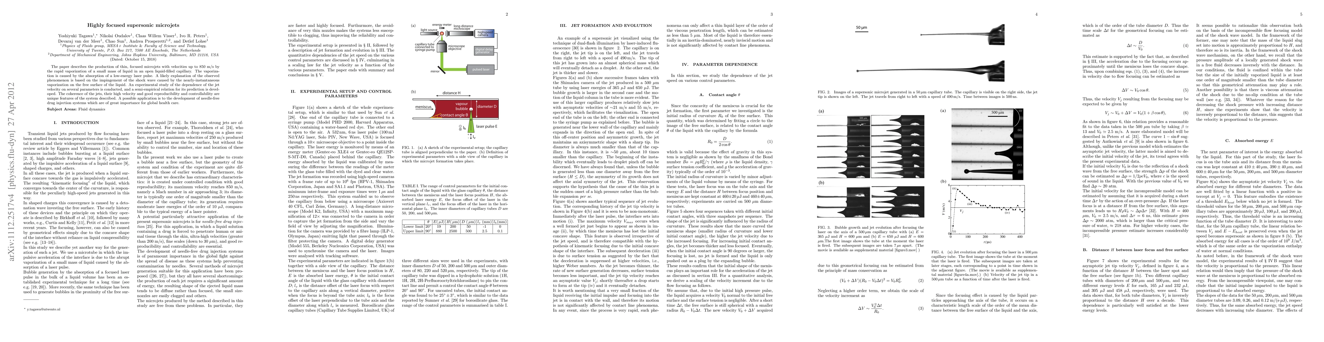 The paper describes the production of thin, focused microjets with velocities up to 850 m/s by the rapid vaporization of a small mass of liquid in an open liquid-filled capillary. The vaporization is caused by the absorption of a low-energy laser pulse. A likely explanation of the observed phenomenon is based on the impingement of the shock wave caused by the nearly-instantaneous vaporization on the free surface of the liquid. An experimental study of the dependence of the jet velocity on several parameters is conducted, and a semi-empirical relation for its prediction is developed. The coherence of the jets, their high velocity and good reproducibility and controllability are unique features of the system described. A possible application is to the development of needle-free drug injection systems which are of great importance for global health care.