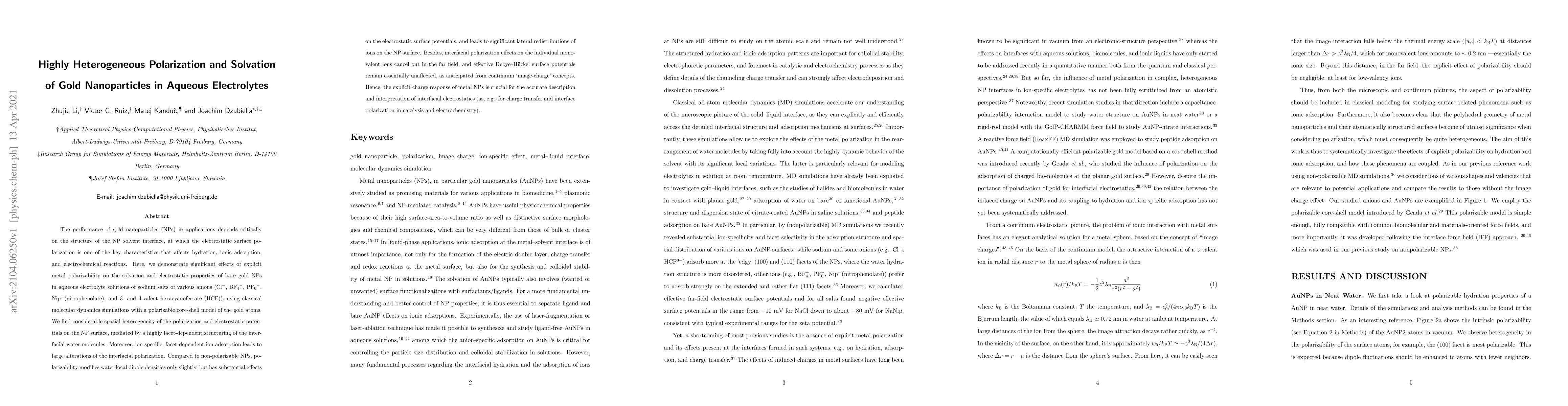 This study reveals significant heterogeneity in polarization and solvation of gold nanoparticles in aqueous electrolytes, driven by explicit metal polarizability and facet-dependent structuring of interfacial water. The research shows that polarizability substantially alters electrostatic surface potentials and redistributes ions on the nanoparticle surface, impacting applications like catalysis and electrochemistry.
