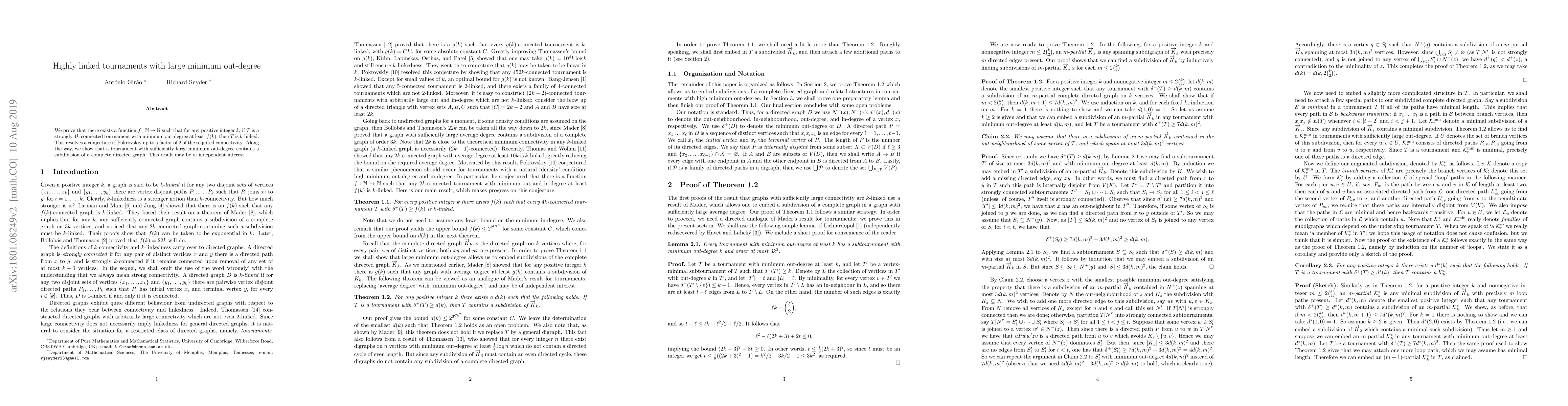Researchers prove that a specific type of graph with high minimum out-degree contains subgraphs linked to each other in a certain way. This result helps solve a long-standing conjecture and may have independent applications.