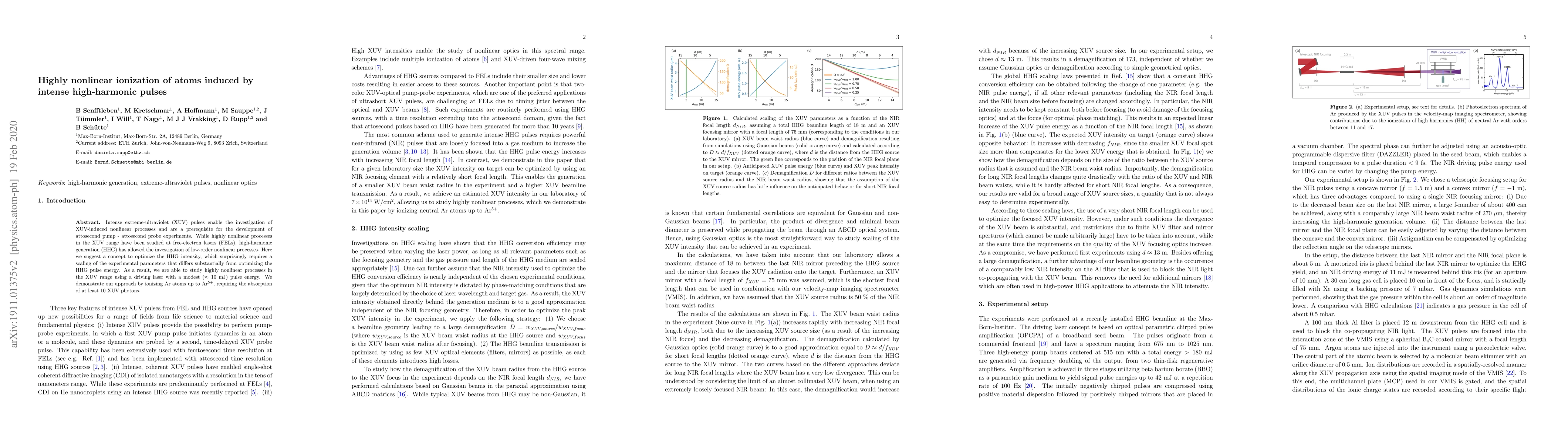 Researchers developed a method to study highly nonlinear ionization of atoms using high-harmonic pulses with modest pulse energies, achieving the ionization of Ar atoms up to Ar^{5+}.