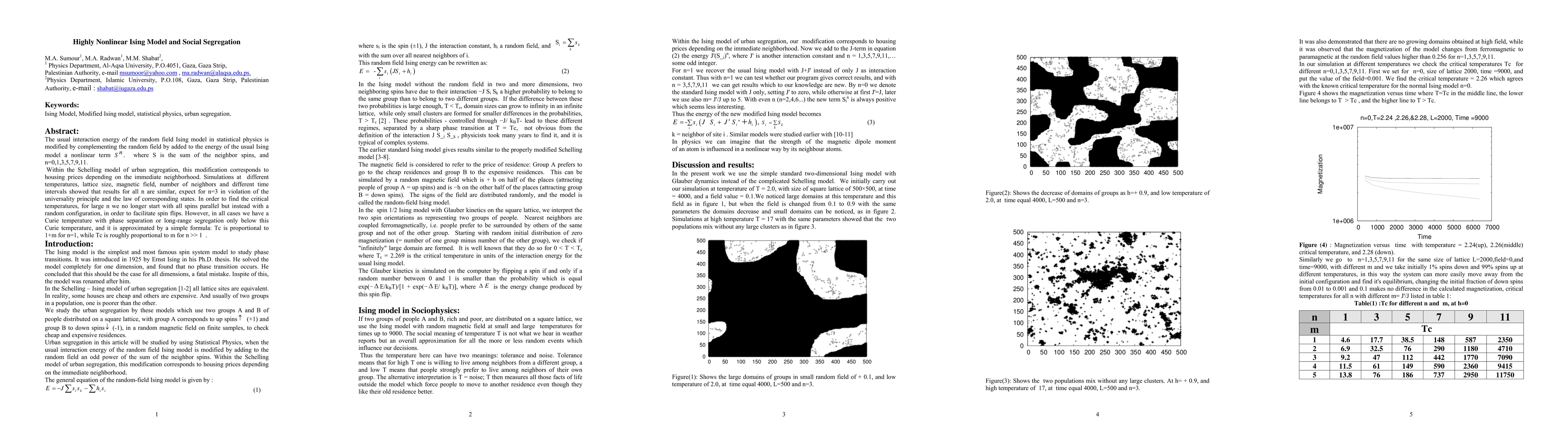 This paper explores a highly nonlinear Ising model with modified interaction energy, where housing prices are influenced by neighborhood characteristics. Simulations reveal that phase separation occurs below a Curie temperature, with Tc proportional to 1+m for n=1 and roughly proportional to m for larger n, deviating from universality principles for n=3.