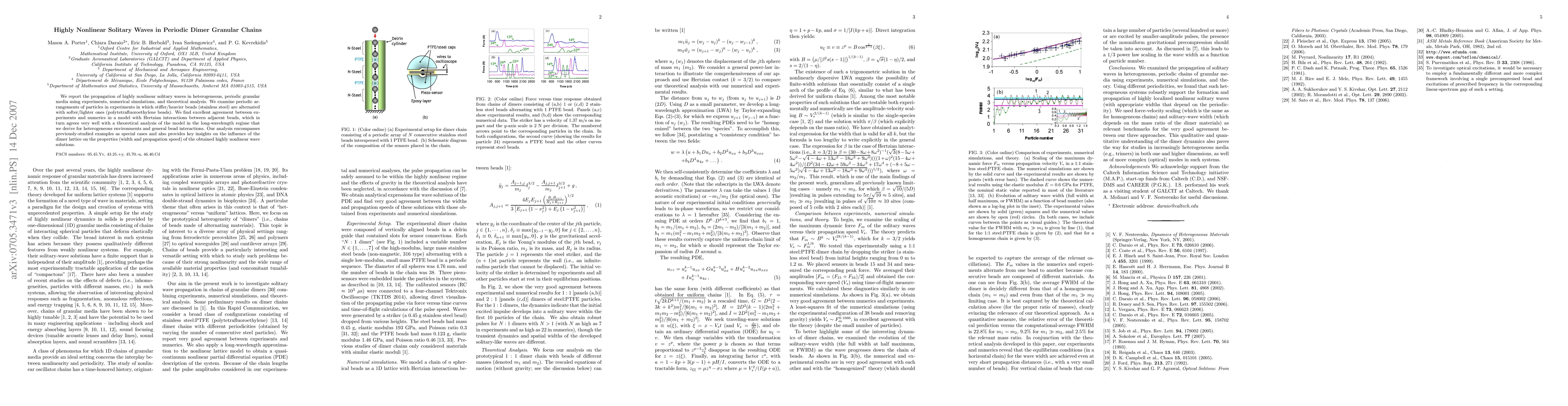 This research investigates the propagation of highly nonlinear solitary waves in periodic dimer granular chains, revealing excellent agreement between experimental results and numerical simulations. The study uses Hertzian interactions and provides theoretical insights into the effects of the dimer lattice on the wave's width and propagation speed.