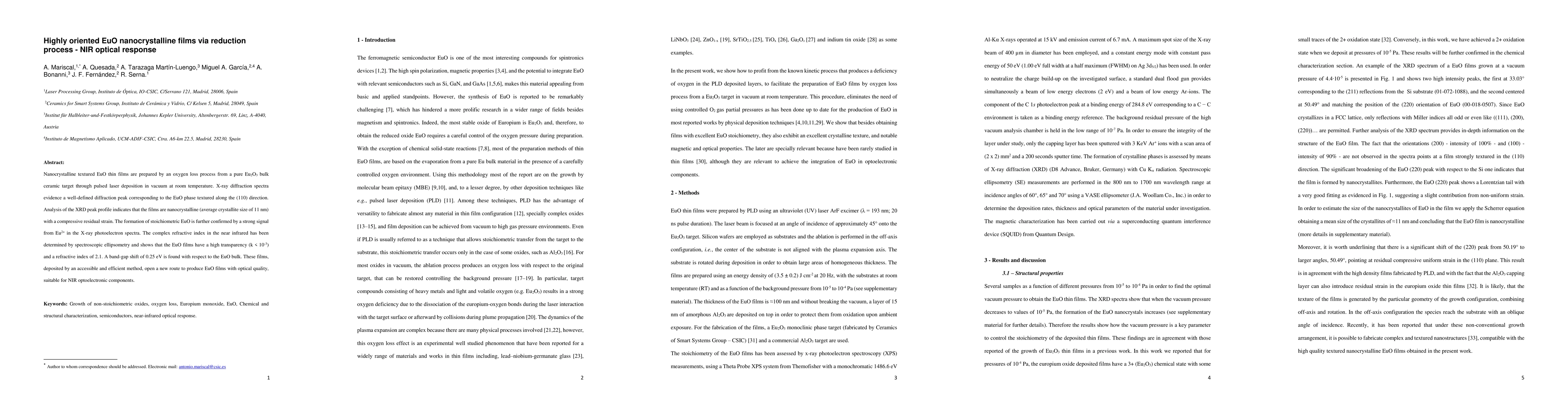 Researchers developed highly oriented EuO nanocrystalline films through a reduction process, showing high transparency and a refractive index of 2.1 in the near infrared spectrum.