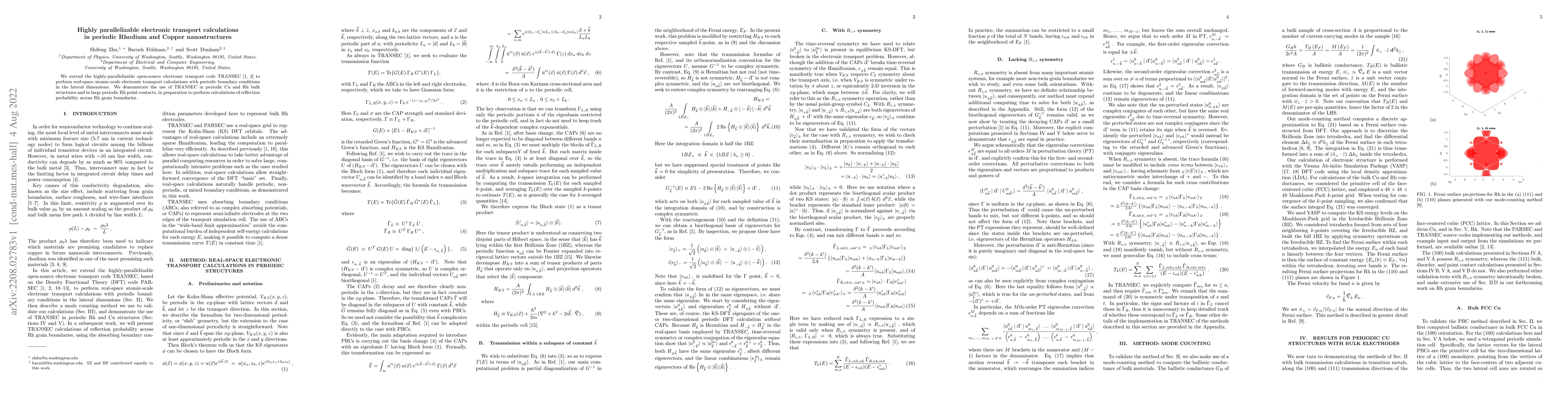 This paper extends the open-source electronic transport code TRANSEC to enable highly parallelizable, real-space atomic-scale transport calculations in periodic nanostructures. The application is demonstrated on Cu and Rh bulk structures and large Rh point contacts, preparing for future studies on Rh grain boundaries.