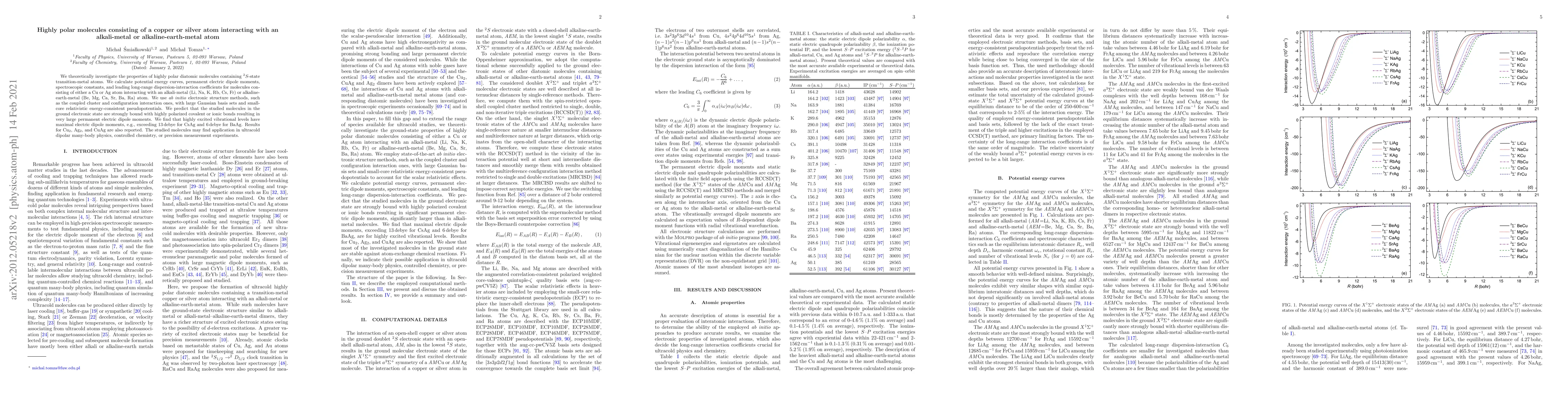 This paper theoretically investigates highly polar diatomic molecules formed by transition-metal atoms (Cu or Ag) interacting with alkali-metal or alkaline-earth-metal atoms. The study reveals strongly bound, highly polarized molecules with large permanent electric dipole moments, potentially useful in ultracold physics and precision measurement experiments.
