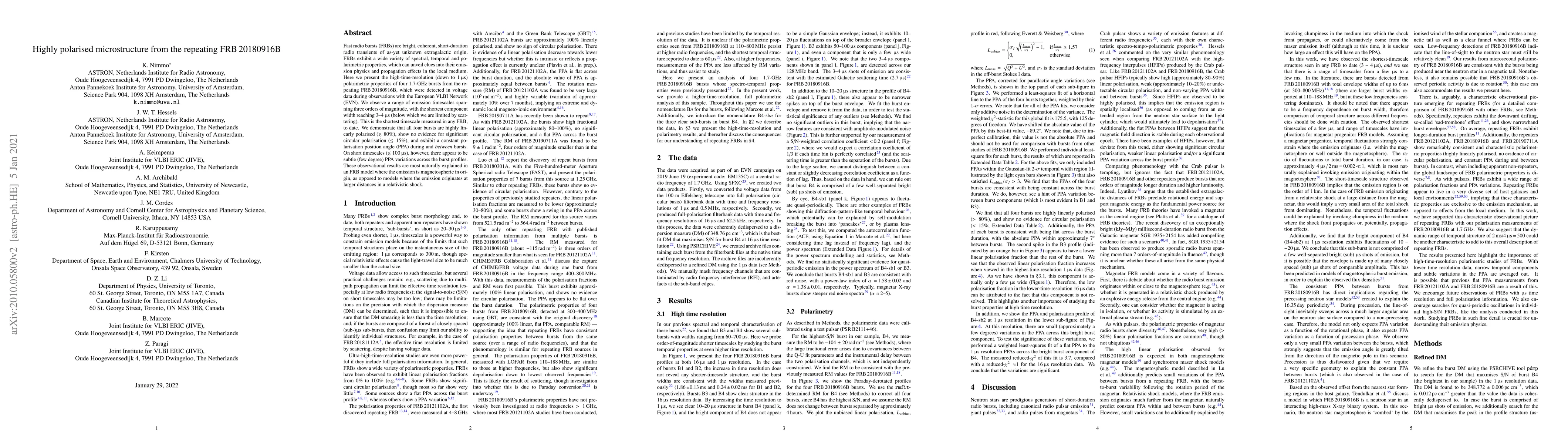 Researchers observed highly polarized microstructure in a repeating Fast Radio Burst, revealing emission timescales as short as 3-4 microseconds, which is the shortest measured to date. The findings suggest that the emission is magnetospheric in origin.