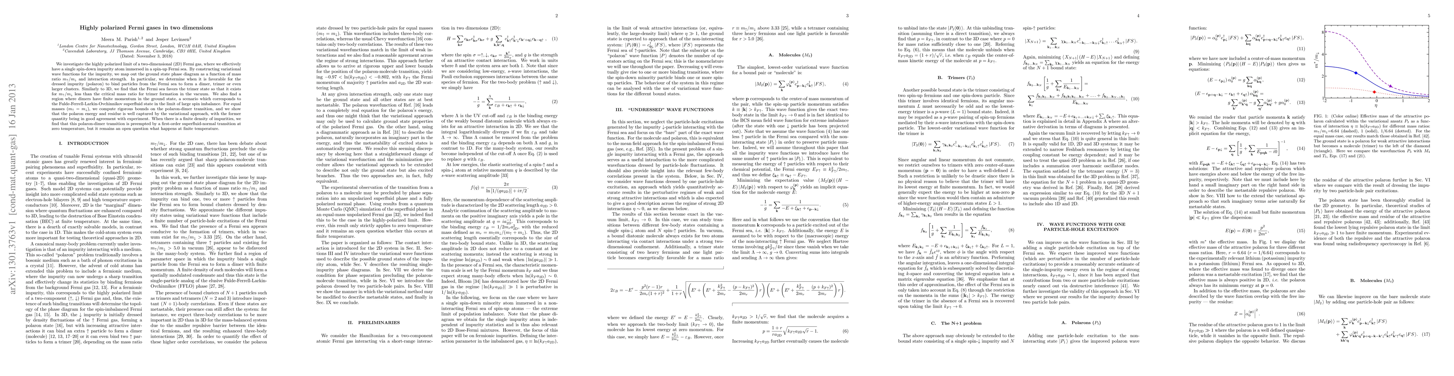 This study explores the behavior of a two-dimensional Fermi gas with highly polarized spins, focusing on a single spin-down atom in a spin-up Fermi sea. Using variational wave functions, the researchers map out the ground state phase diagram based on mass ratio and interaction strength, identifying conditions for impurity-particle clustering. They find trimer formation favored by the Fermi sea even below vacuum thresholds, and a dimer state with finite momentum, akin to the Fulde-Ferrell-Larkin-Ovchinnikov superfluid state. For equal masses, they establish bounds on polaron-dimer transition, validating their approach with experimental data. Finite impurity density leads to a superfluid-normal transition, though implications at finite temperature remain unclear.