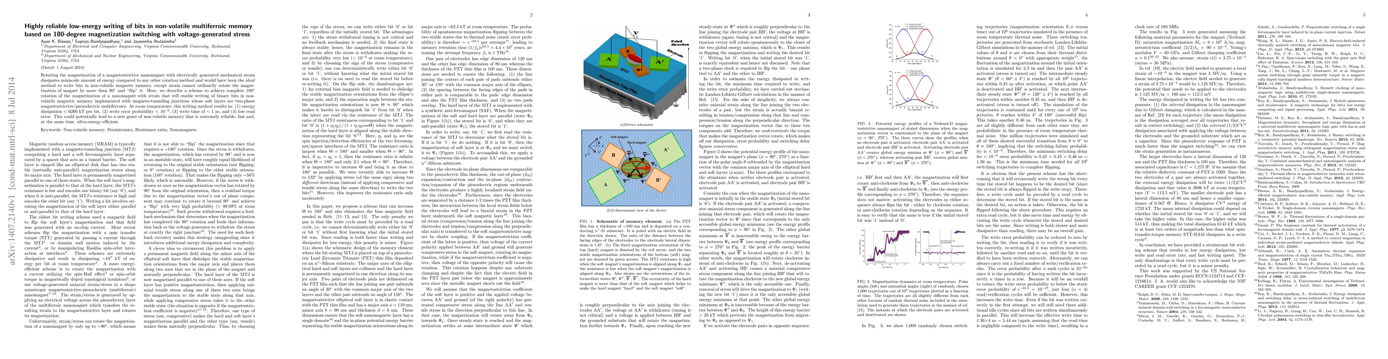 Researchers developed a low-energy method to write binary bits in non-volatile magnetic memory, achieving 180-degree magnetization switching with minimal energy dissipation (<6200 kT per bit) and high reliability.