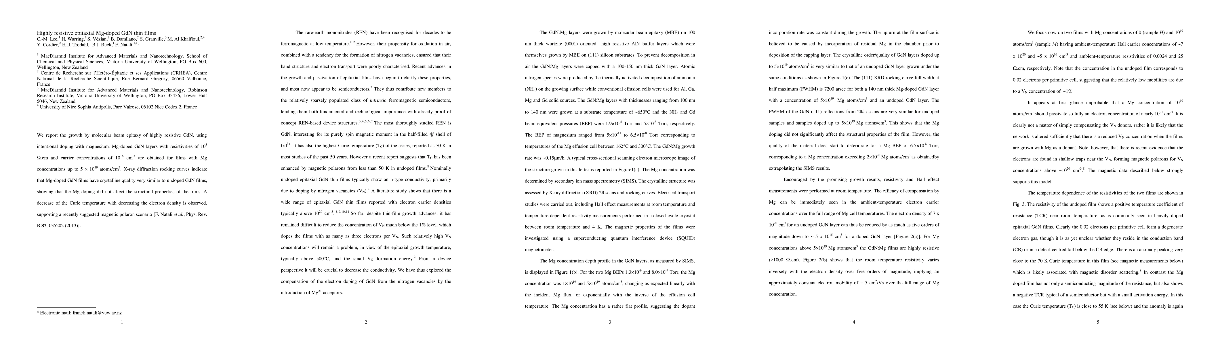 The research used molecular beam epitaxy to grow Mg-doped GdN thin films.