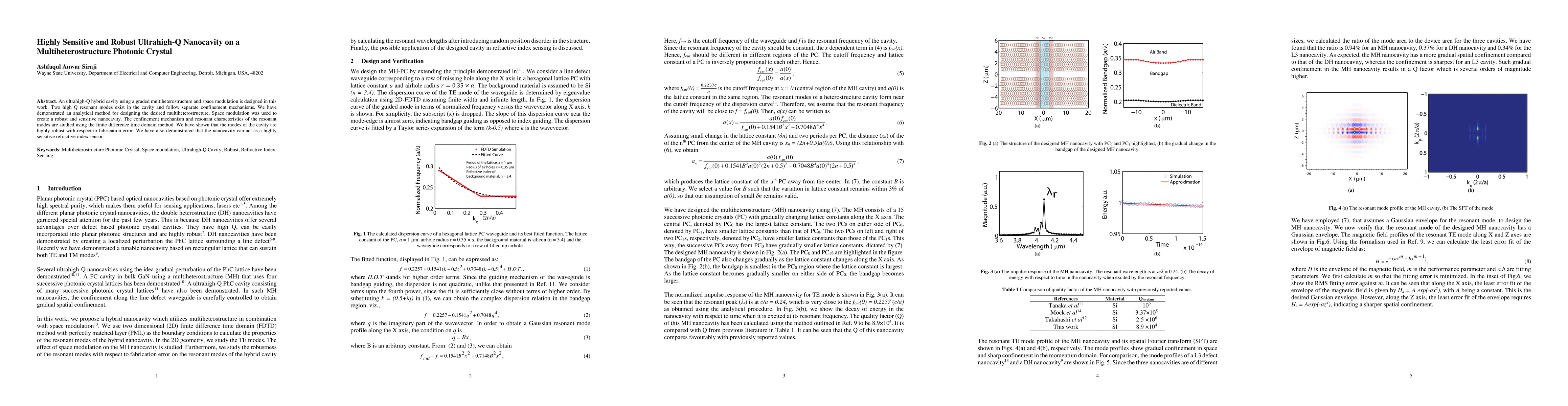 This paper presents an ultrahigh-Q nanocavity based on a multiheterostructure photonic crystal, demonstrating two high Q resonant modes. The design uses space modulation for robustness and high sensitivity, showcasing its efficacy as a refractive index sensor despite fabrication errors.