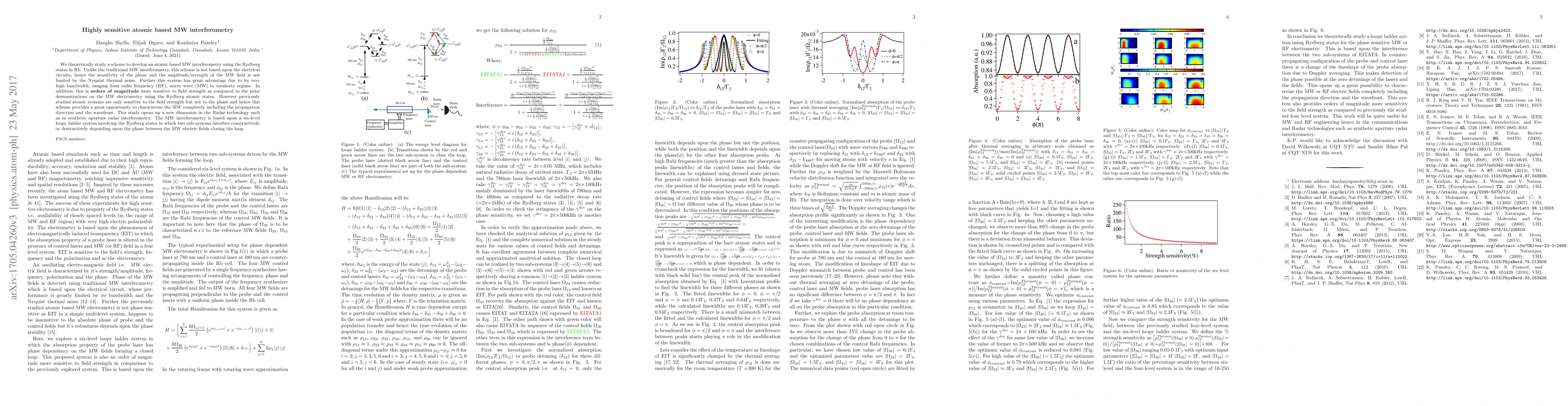 This paper proposes a highly sensitive atomic-based MW interferometry scheme using Rydberg states in Rb, which offers unprecedented sensitivity to both phase and amplitude of MW fields, surpassing traditional methods by orders of magnitude and enabling applications in advanced radar technology.