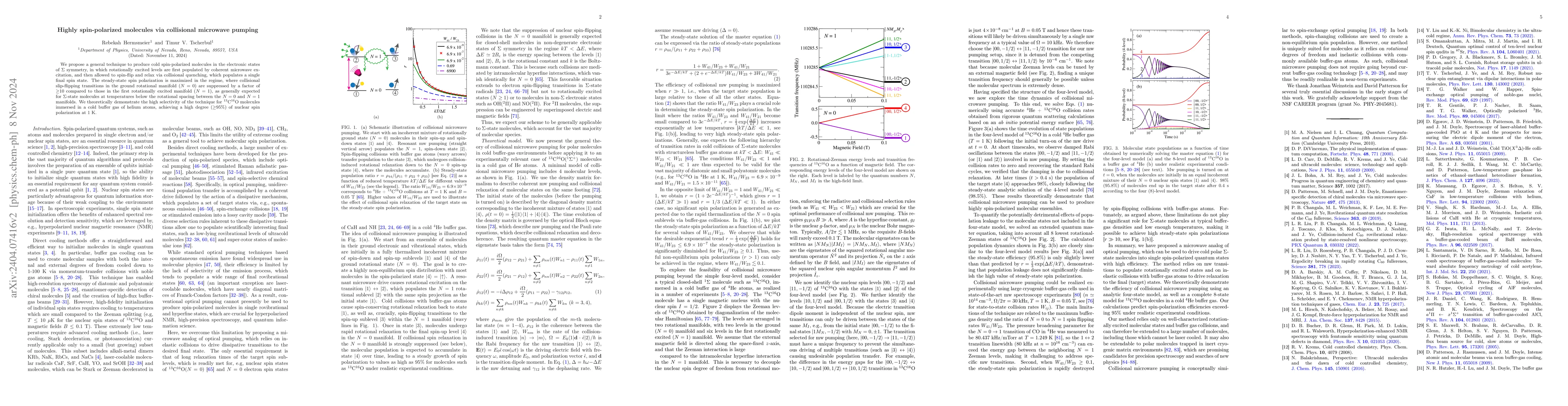 This research introduces a method to create highly spin-polarized cold molecules using microwave excitation to populate rotationally excited states, followed by collisional quenching to achieve nuclear spin polarization. The technique demonstrates a 95% or greater degree of polarization for $^{13}$C$^{16}$O molecules in a helium buffer gas at 1 K.