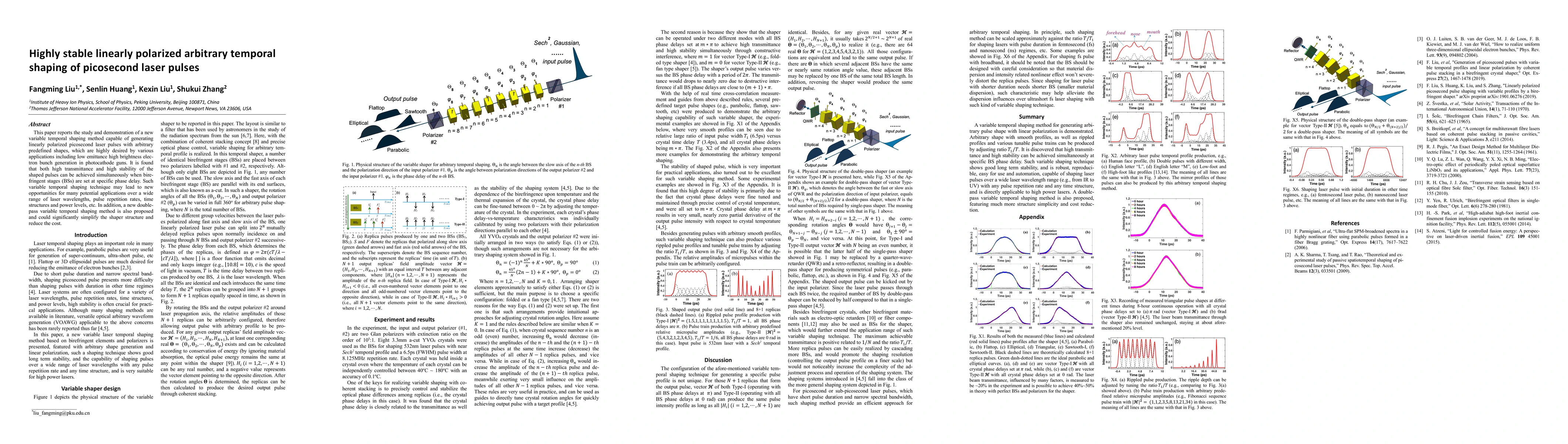 The research demonstrates a new variable temporal shaping method using birefringent stages (BSs) to generate linearly polarized picosecond laser pulses with arbitrary predefined shapes. The study employs eight 3.3mm a-cut YVO4 crystals as BSs for shaping 532nm laser pulses with a Sech2 temporal profile and 6.5ps (FWHM) pulse width at 8.125MHz repetition rate.