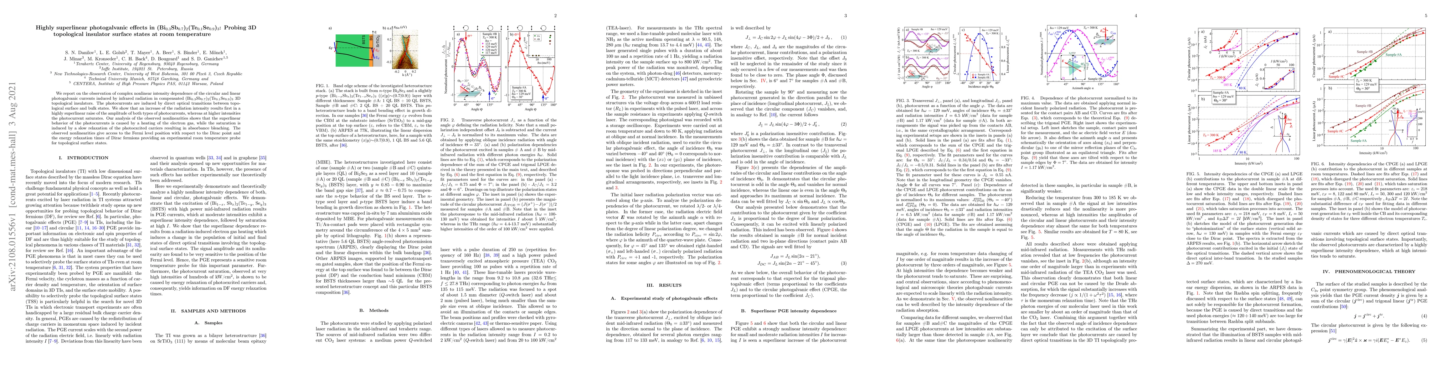 We report on the observation of complex nonlinear intensity dependence of the circular and linear photogalvanic currents induced by infrared radiation in compensated (Bi$_{0.3}$Sb$_{0.7}$)$_2$(Te$_{0.1}$Se$_{0.9}$)$_3$ 3D topological insulators. The photocurrents are induced by direct optical transitions between topological surface and bulk states. We show that an increase of the radiation intensity results first in a highly superlinear raise of the amplitude of both types of photocurrents, whereas at higher intensities the photocurrent saturates. Our analysis of the observed nonlinearities shows that the superlinear behavior of the photocurrents is caused by a heating of the electron gas, while the saturation is induced by a slow relaxation of the photoexcited carriers resulting in absorbance bleaching. The observed nonlinearities give access to the Fermi level position with respect to the Dirac point and the energy relaxation times of Dirac fermions providing an experimental room temperature probe for topological surface states.