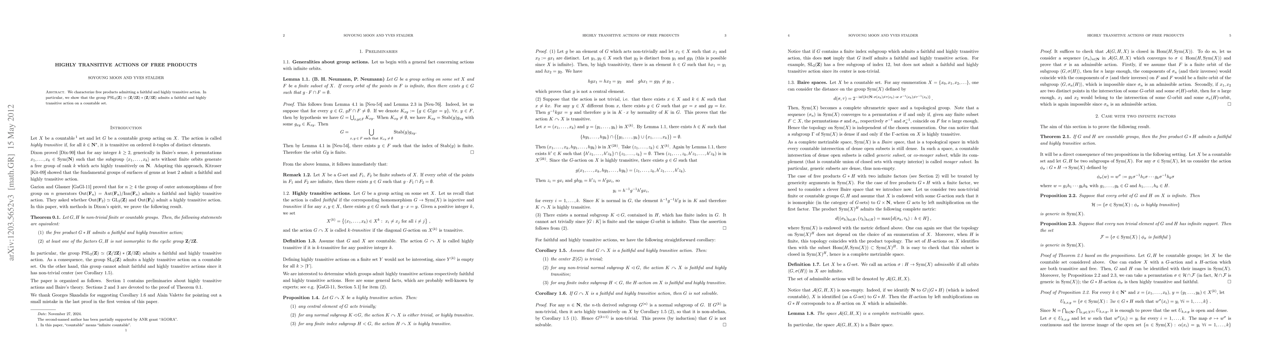Summary: This paper characterizes free products that allow a faithful and highly transitive action. It demonstrates that the group $\PSL_2(\Z)$, isomorphic to $(\Z/2\Z)*(\Z/3\Z)$, exhibits such an action on a countable set.