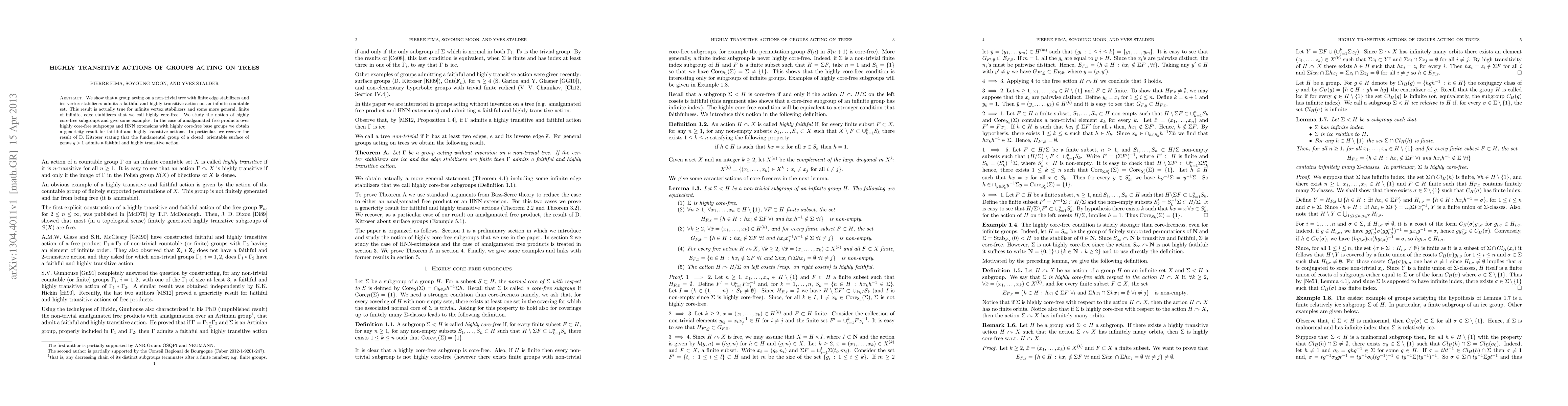 This paper demonstrates that groups acting on trees with specific stabilizer properties can exhibit highly transitive actions on infinite countable sets. It also explores the concept of highly core-free subgroups and proves genericity results for amalgamated free products and HNN extensions involving these subgroups.