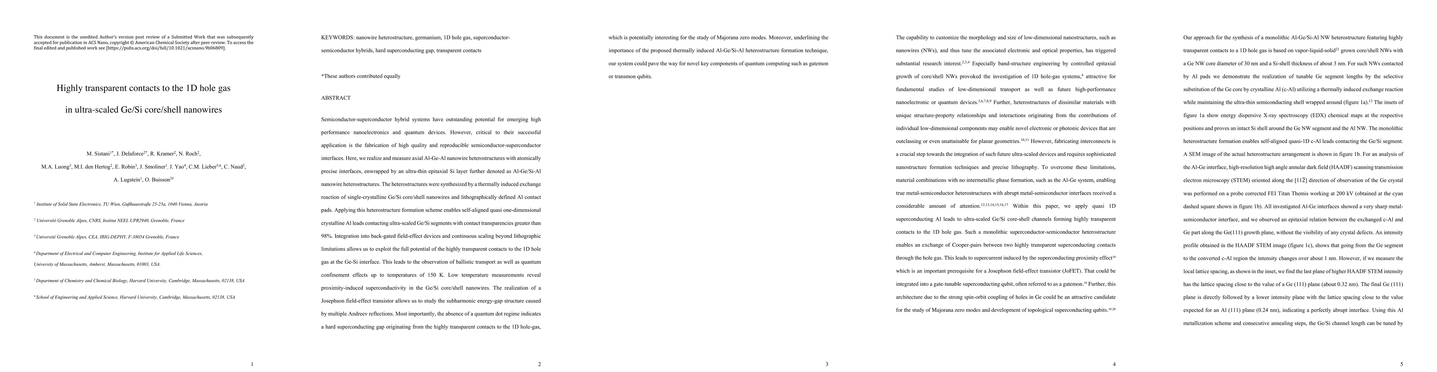 This research develops highly transparent Al-Ge/Si-Al nanowire heterostructures, enabling ballistic transport and quantum confinement effects in Ge/Si core/shell nanowires, with potential applications in quantum computing components like gatemon or transmon qubits.