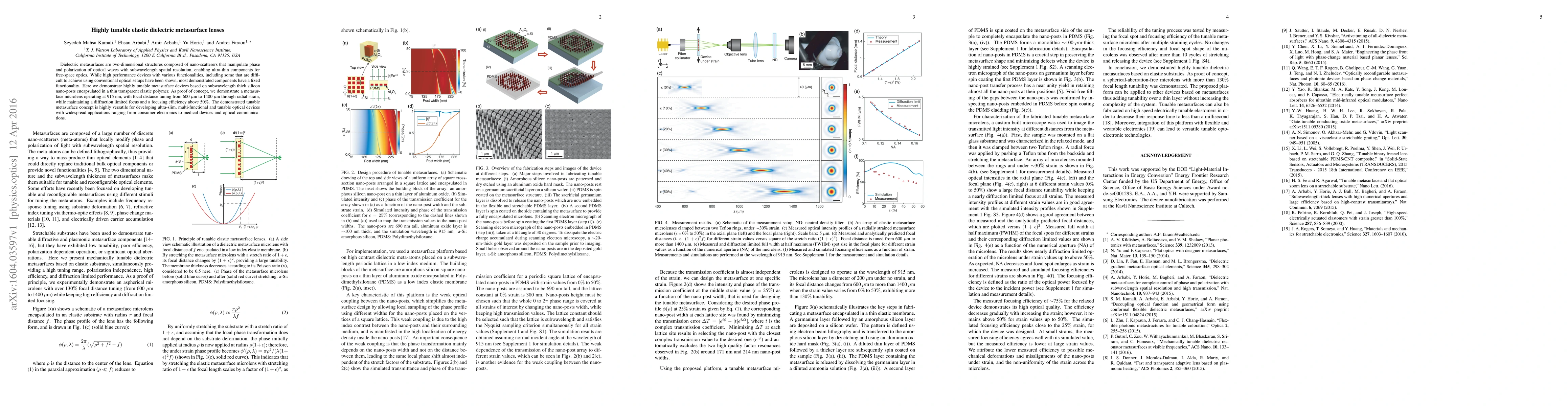 This paper presents tunable dielectric metasurface lenses made from silicon nano-posts in an elastic polymer, enabling focal length adjustment from 600 to 1400 µm via radial strain while maintaining high focusing efficiency. This versatile technology holds promise for ultra-slim, multi-functional optical devices across various fields.