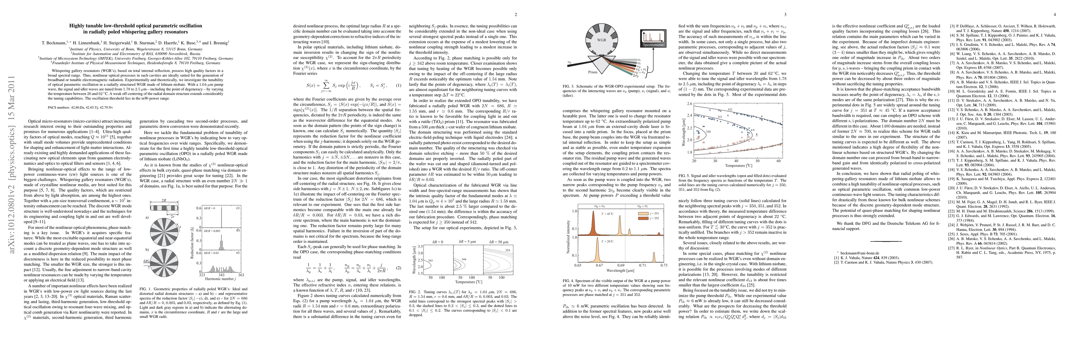 Whispering gallery resonators (WGR's), based on total internal reflection, possess high quality factors in a broad spectral range. Thus, nonlinear optical processes in such cavities are ideally suited for the generation of broadband or tunable electromagnetic radiation. Experimentally and theoretically, we investigate the tunability of optical parametric oscillation in a radially structured WGR made of lithium niobate. With a 1.04 /mum pump wave, the signal and idler waves are tuned from 1.78 to 2.5 \mum - including the point of degeneracy - by varying the temperature between 20 and 62 {\deg}C. A weak off-centering of the radial domain structure extends considerably the tuning capabilities. The oscillation threshold lies in the mW-power range.
