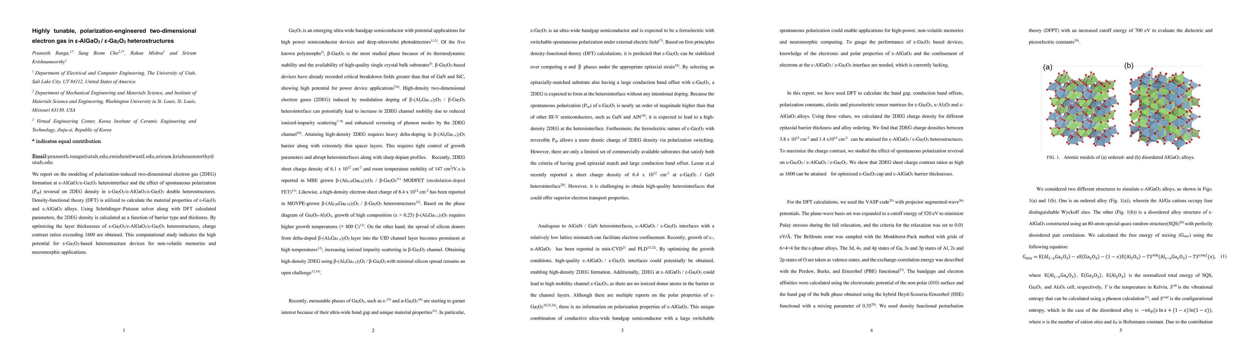 This research models polarization-induced two-dimensional electron gas (2DEG) formation in ${\epsilon}$-AlGaO3 / ${\epsilon}$-Ga2O3 heterostructures, demonstrating the impact of spontaneous polarization reversal on 2DEG density. Computational studies using density-functional theory and Schrodinger-Poisson solvers reveal high charge contrast ratios, indicating potential for advanced device applications in non-volatile memories and neuromorphic computing.