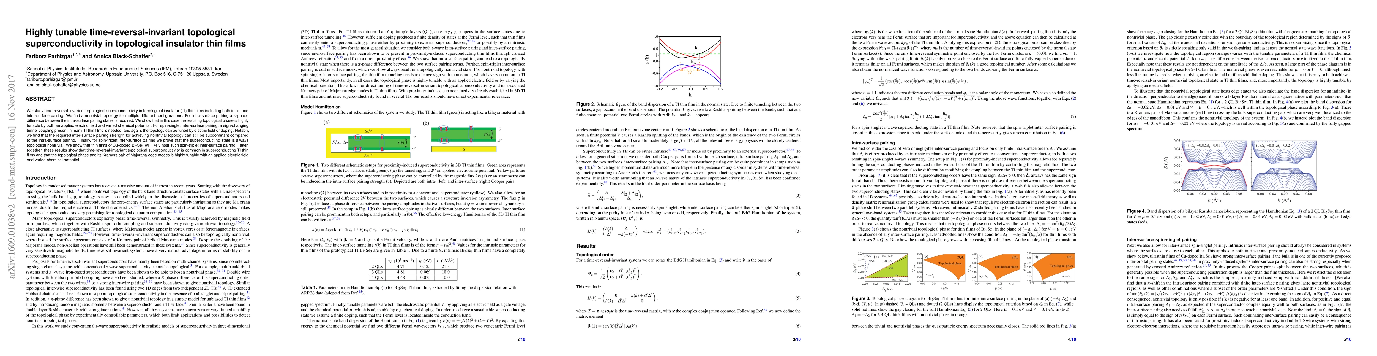 This paper explores time-reversal-invariant topological superconductivity in topological insulator thin films, demonstrating a nontrivial topology that can be tuned by electric fields and chemical potentials. It highlights the tunability of topological phases in both intra- and inter-surface pairing configurations.