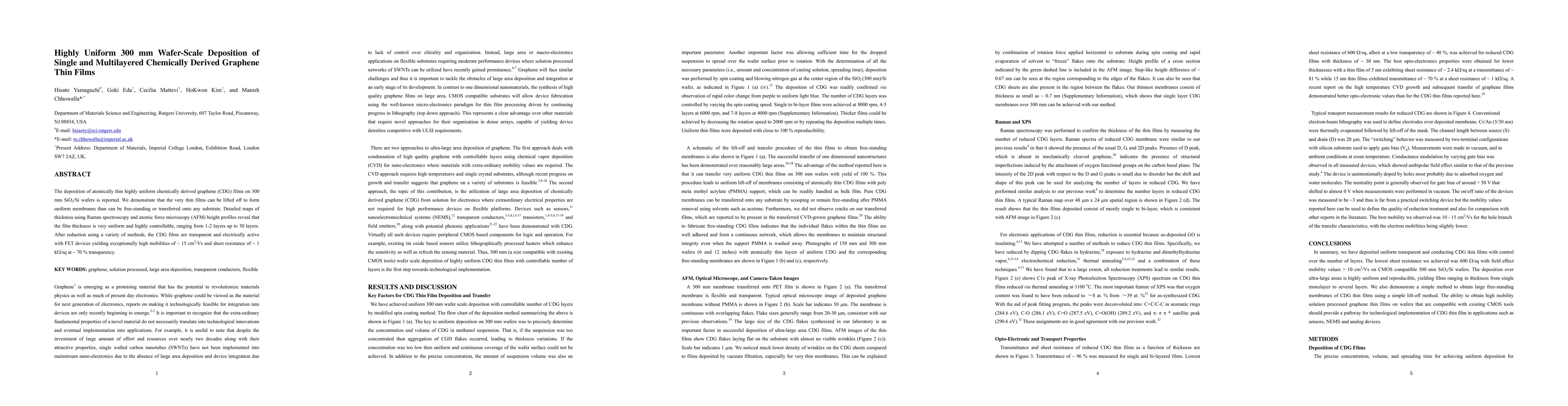 Researchers successfully deposited uniform layers of chemically derived graphene on 300mm wafers, yielding transparent and electrically active films with high mobilities and low sheet resistance.