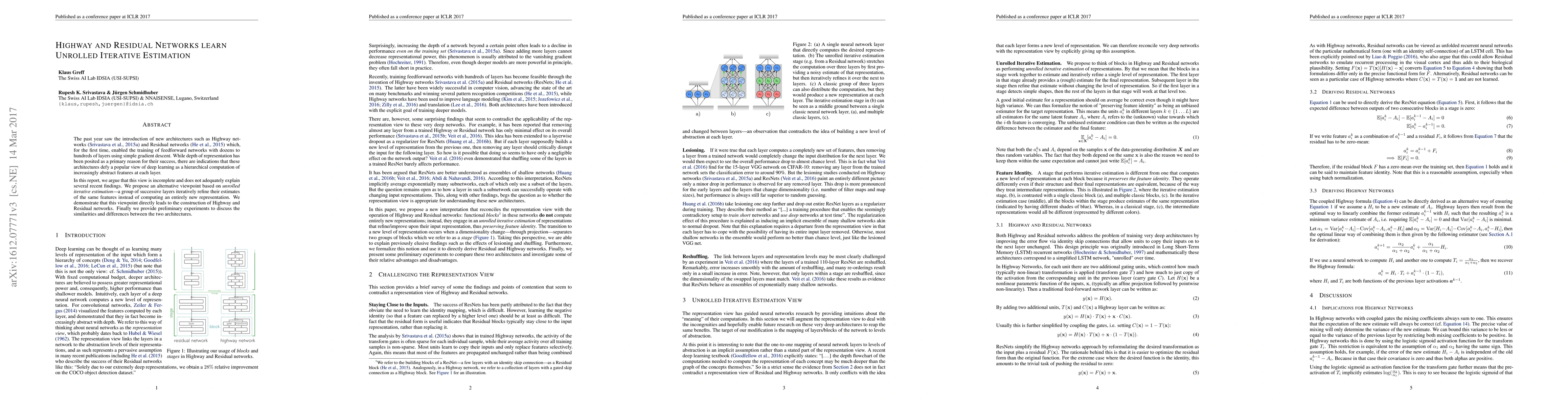 The past year saw the introduction of new architectures such as Highway networks and Residual networks which, for the first time, enabled the training of feedforward networks with dozens to hundreds of layers using simple gradient descent. While depth of representation has been posited as a primary reason for their success, there are indications that these architectures defy a popular view of deep learning as a hierarchical computation of increasingly abstract features at each layer. In this report, we argue that this view is incomplete and does not adequately explain several recent findings. We propose an alternative viewpoint based on unrolled iterative estimation -- a group of successive layers iteratively refine their estimates of the same features instead of computing an entirely new representation. We demonstrate that this viewpoint directly leads to the construction of Highway and Residual networks. Finally we provide preliminary experiments to discuss the similarities and differences between the two architectures.