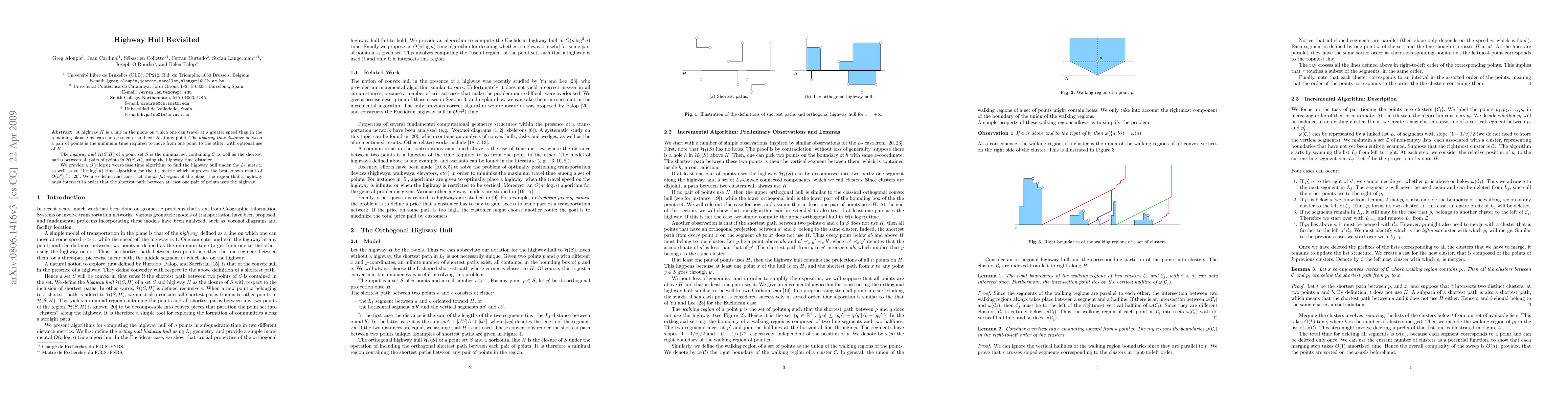 A highway H is a line in the plane on which one can travel at a greater speed than in the remaining plane. One can choose to enter and exit H at any point. The highway time distance between a pair of points is the minimum time required to move from one point to the other, with optional use of H. The highway hull HH(S,H) of a point set S is the minimal set containing S as well as the shortest paths between all pairs of points in HH(S,H), using the highway time distance. We provide a Theta(n log n) worst-case time algorithm to find the highway hull under the L_1 metric, as well as an O(n log^2 n) time algorithm for the L_2 metric which improves the best known result of O(n^2). We also define and construct the useful region of the plane: the region that a highway must intersect in order that the shortest path between at least one pair of points uses the highway.