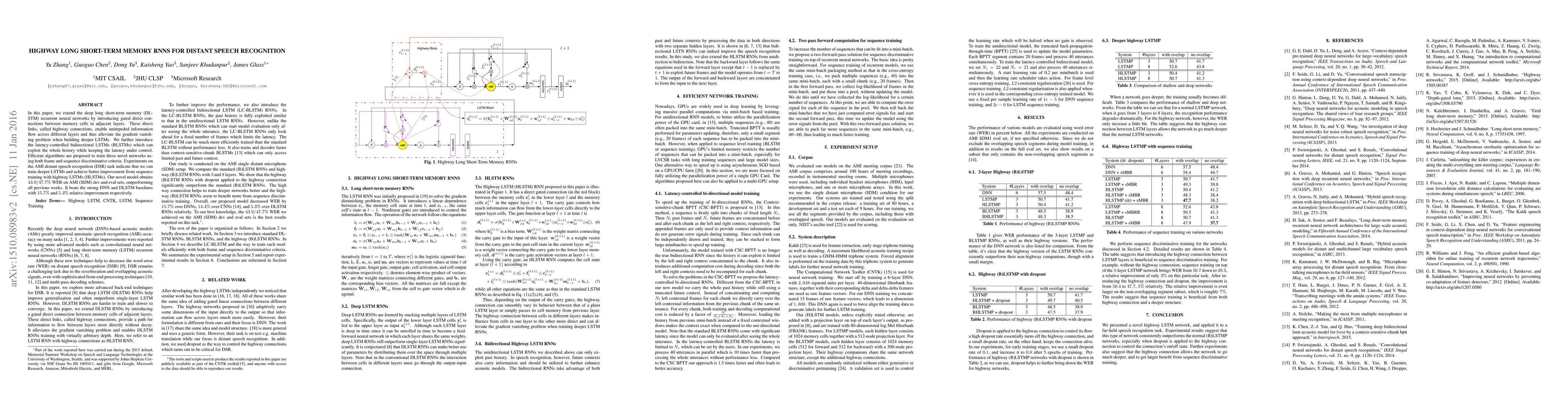 This paper introduces highway long short-term memory (LSTM) RNNs with direct connections between memory cells to mitigate gradient vanishing and proposes latency-controlled bidirectional LSTMs for distant speech recognition. The model achieves superior performance on the AMI DSR task, outperforming previous DNN and DLSTM baselines.