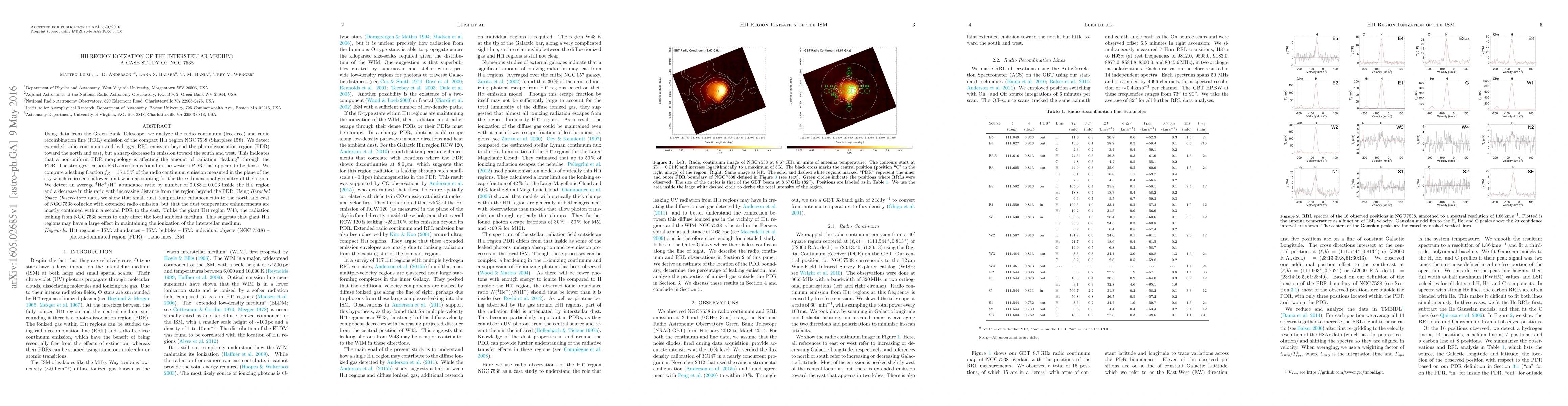 Using data from the Green Bank Telescope, we analyze the radio continuum (free-free) and radio recombination line (RRL) emission of the compact HII region NGC 7538 (Sharpless 158). We detect extended radio continuum and hydrogen RRL emission beyond the photodissociation region (PDR) toward the north and east, but a sharp decrease in emission toward the south and west. This indicates that a non-uniform PDR morphology is affecting the amount of radiation "leaking" through the PDR. The strongest carbon RRL emission is found in the western PDR that appears to be dense. We compute a leaking fraction $f_R = 15 \pm 5$ % of the radio continuum emission measured in the plane of the sky which represents a lower limit when accounting for the three-dimensional geometry of the region. We detect an average $^4\textrm{He}^+/\textrm{H}^+$ abundance ratio by number of $0.088 \pm 0.003$ inside the HII region and a decrease in this ratio with increasing distance from the region beyond the PDR. Using Herschel Space Observatory data, we show that small dust temperature enhancements to the north and east of NGC 7538 coincide with extended radio emission, but that the dust temperature enhancements are mostly contained within a second PDR to the east. Unlike the giant HII region W43, the radiation leaking from NGC 7538 seems to only affect the local ambient medium. This suggests that giant HII regions may have a large effect in maintaining the ionization of the interstellar medium.