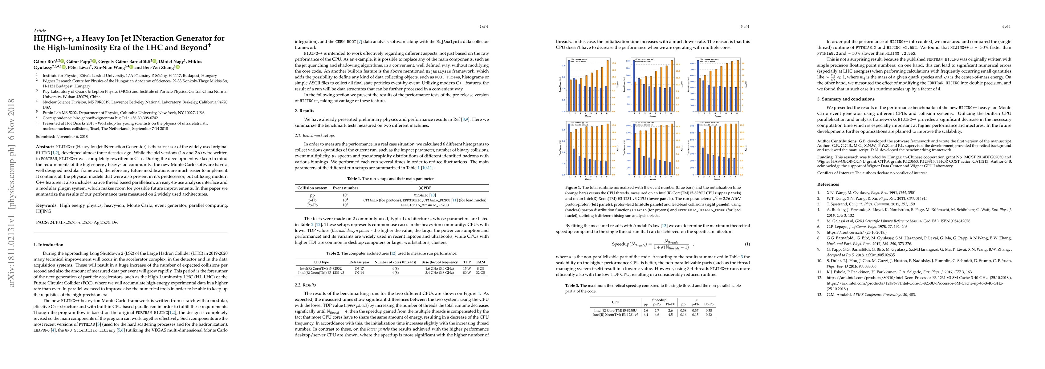HIJING++ (Heavy Ion Jet INteraction Generator) is the successor of the widely used original HIJING, developed almost three decades ago. While the old versions (1.x and 2.x) were written in FORTRAN, HIJING++ was completely rewritten in C++. During the development we keep in mind the requirements of the high-energy heavy-ion community: the new Monte Carlo software have a well designed modular framework, therefore any future modifications are much easier to implement. It contains all the physical models that were also present in it's predecessor, but utilizing modern C++ features it also includes native thread based parallelism, an easy-to-use analysis interface and a modular plugin system, which makes room for possible future improvements. In this paper we summarize the results of our performance tests measured on 2 widely used architectures.