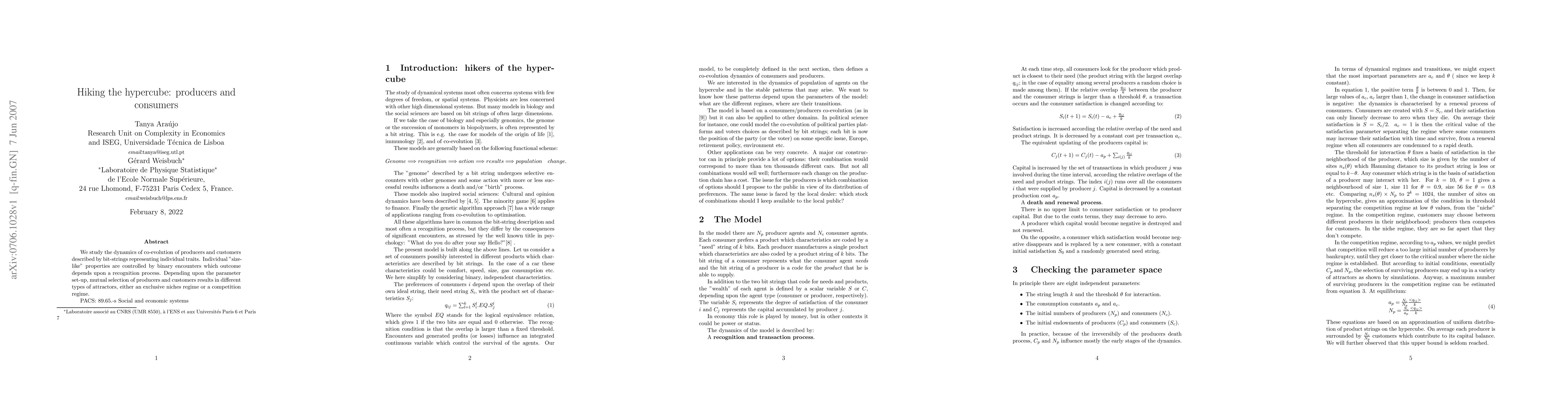 We study the dynamics of co-evolution of producers and customers described by bit-strings representing individual traits. Individual ''size-like'' properties are controlled by binary encounters which outcome depends upon a recognition process. Depending upon the parameter set-up, mutual selection of producers and customers results in different types of attractors, either an exclusive niches regime or a competition regime.
