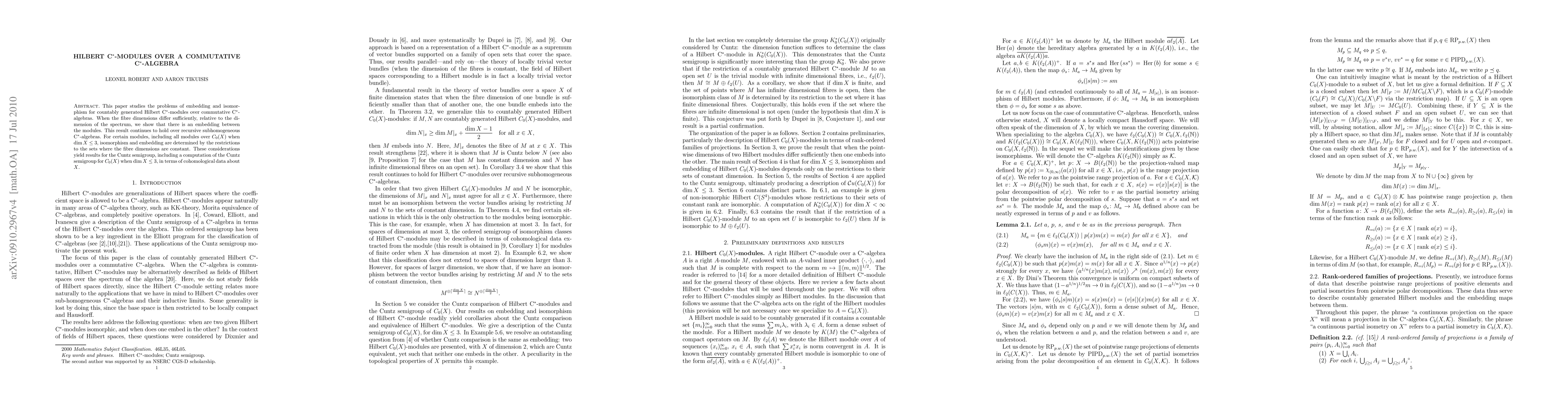 This paper explores embedding and isomorphism issues for countably generated Hilbert C*-modules over commutative C*-algebras, showing embedding when fibre dimensions differ sufficiently. It also determines isomorphism and embedding for certain modules, including those over $C_0(X)$ when $dim X \leq 3$, and computes the Cuntz semigroup for such algebras in terms of $X$'s cohomological data.